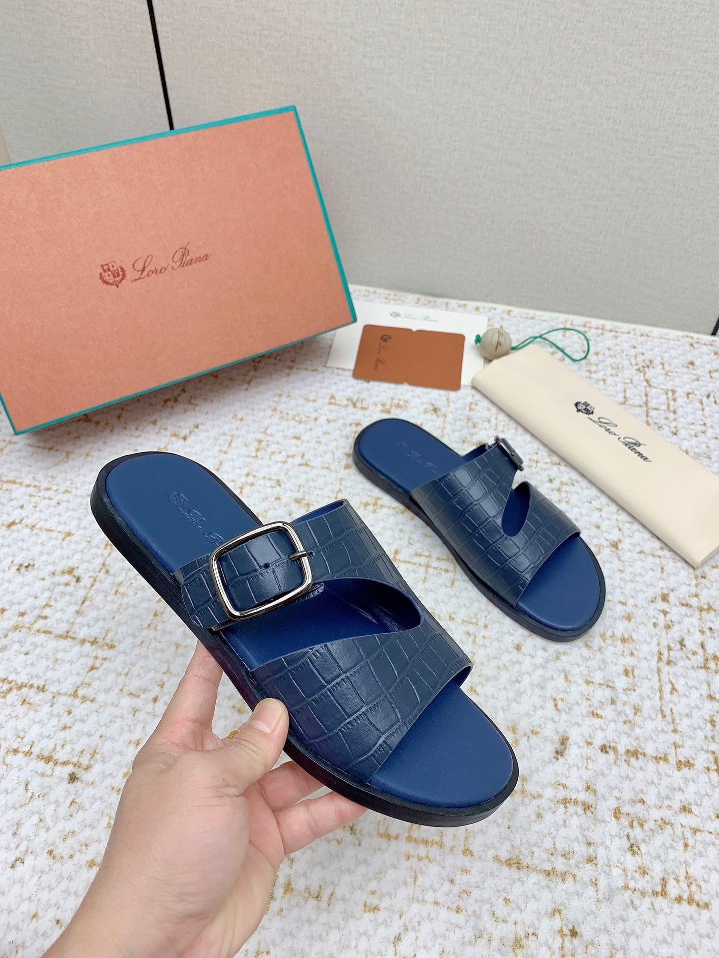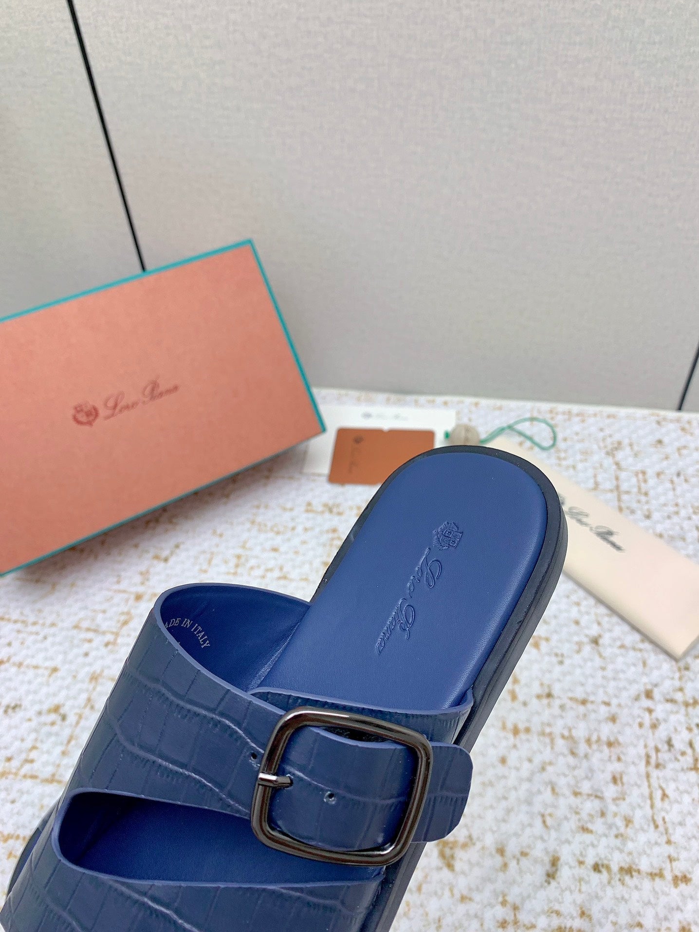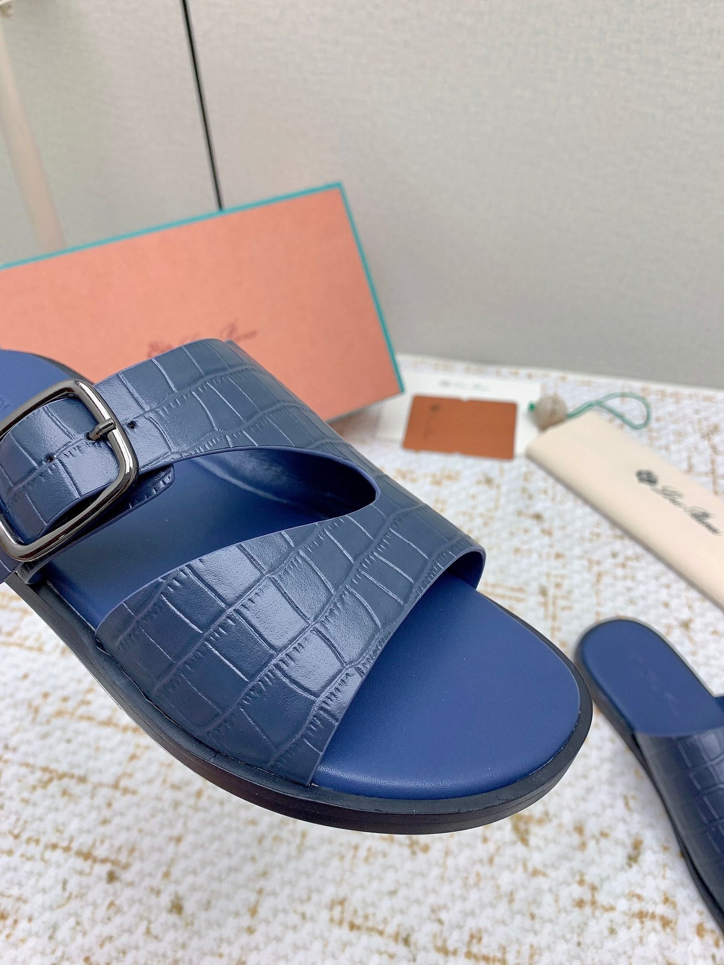 SANDALS IN CLASSIC BLUE SNAKE EMBOSSED CALFSKIN