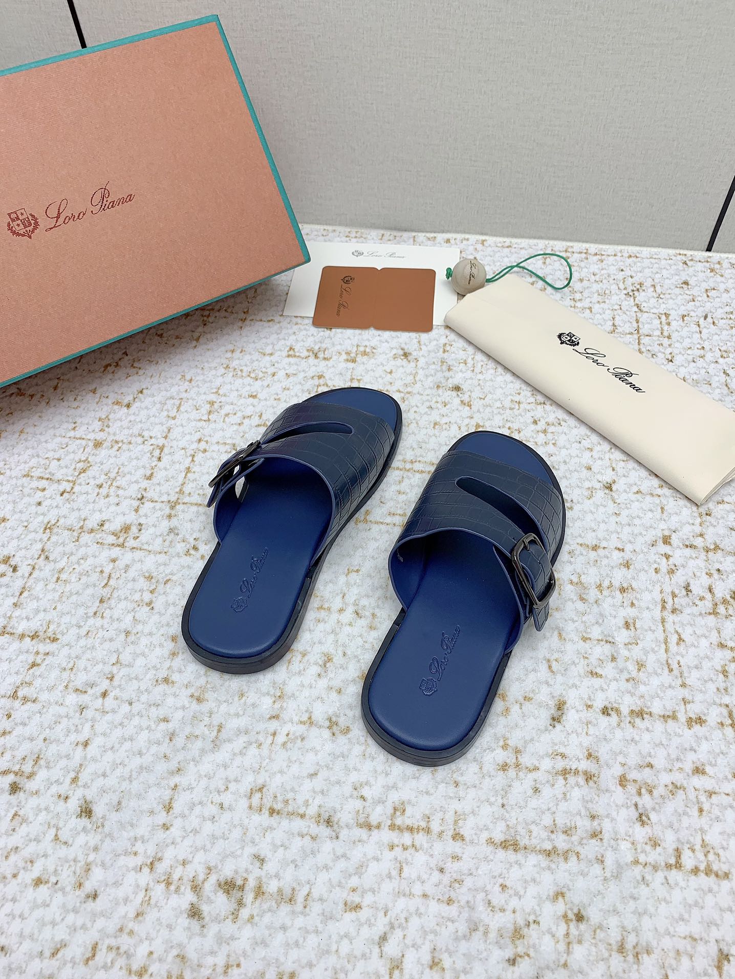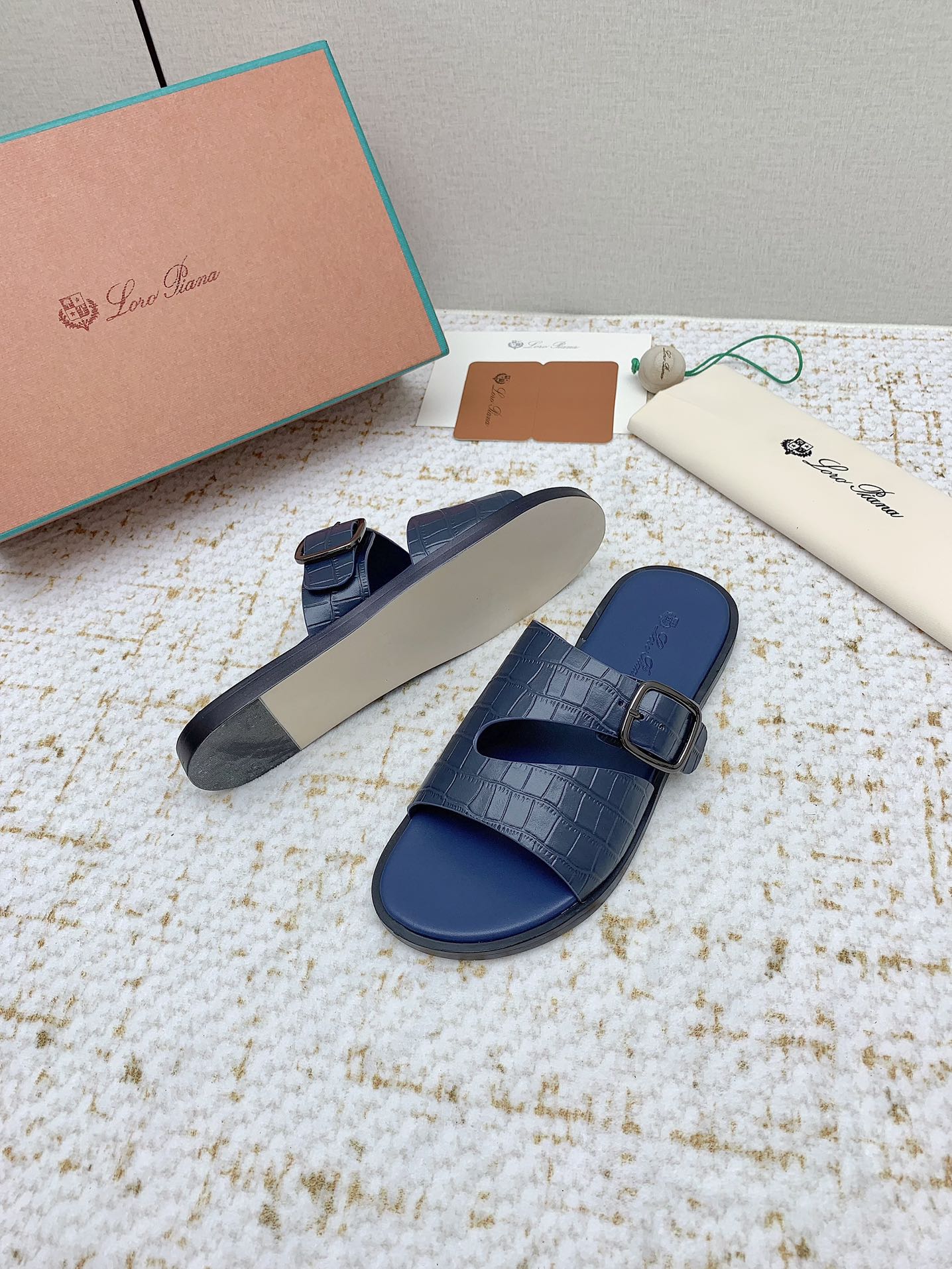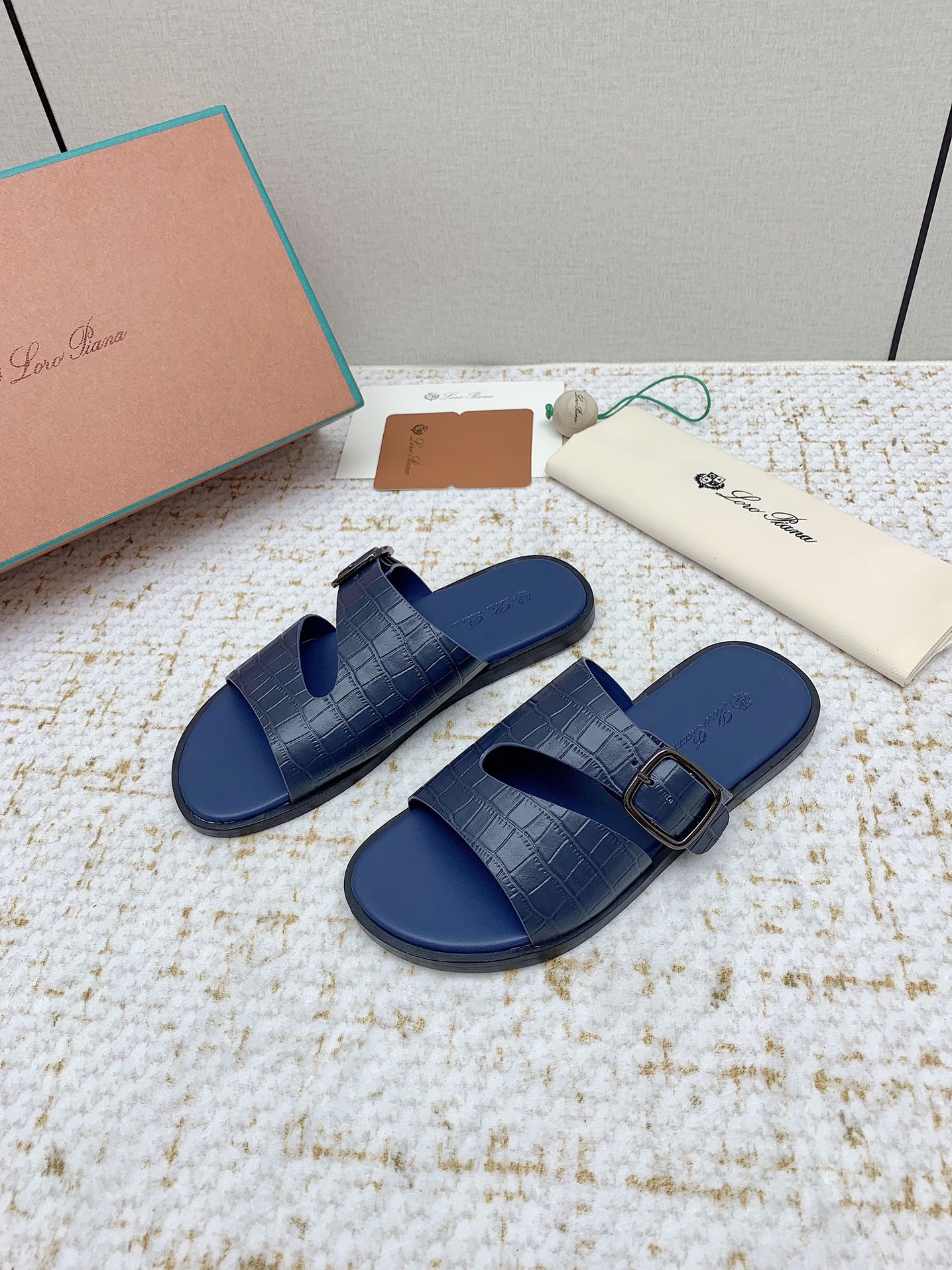 SANDALS IN CLASSIC BLUE SNAKE EMBOSSED CALFSKIN