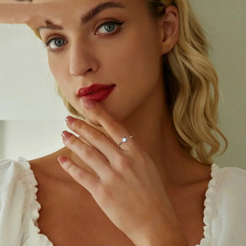 ❤ [Material] 925 Sterling Silver+Pavé Setting CZ+Larimar+plated White Gold