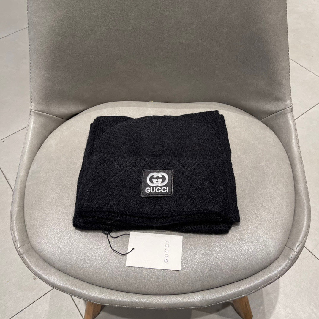 SET SCARF AND HAT IN BLACK CASHMERE AND RABBIT FUR 397374