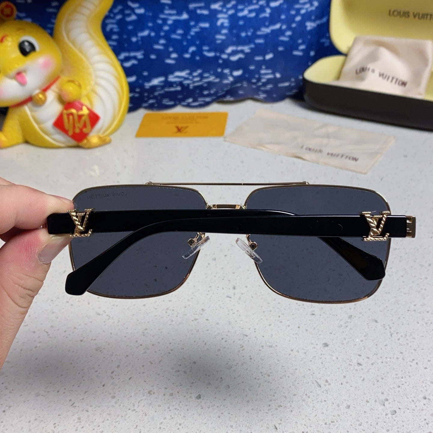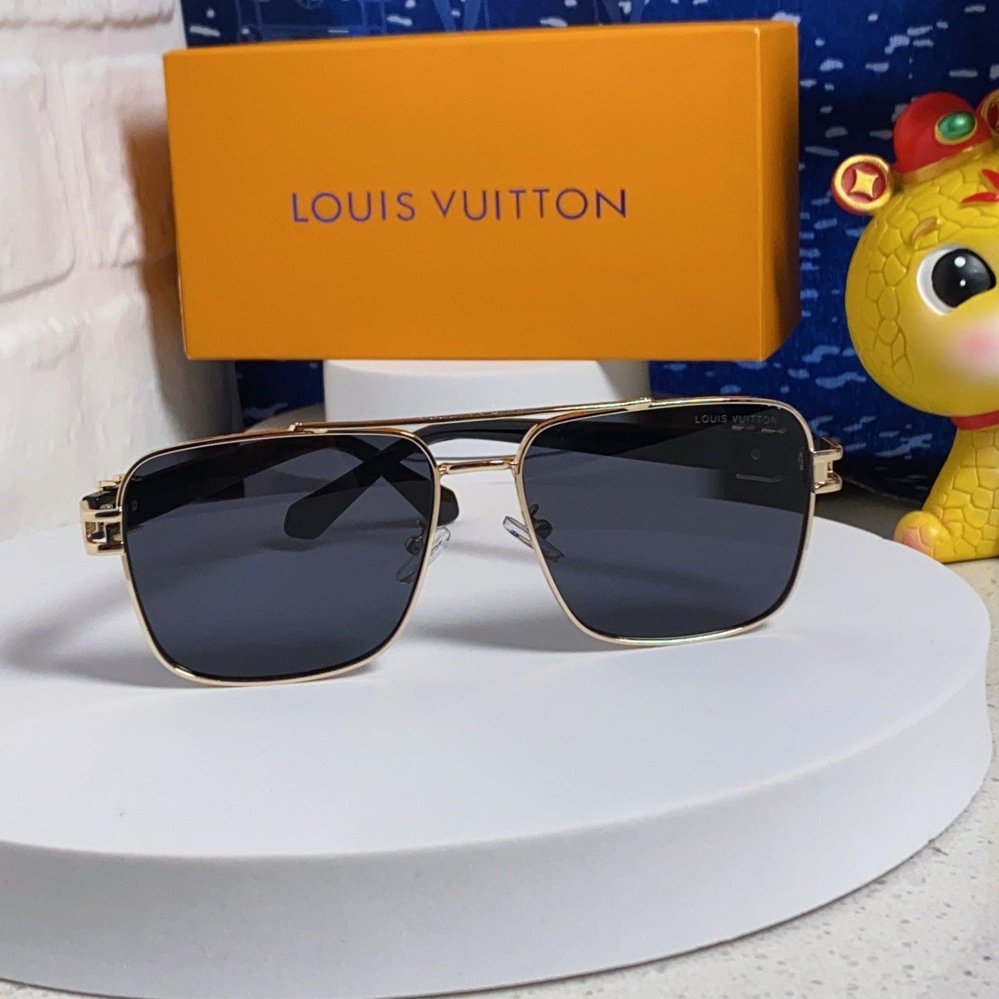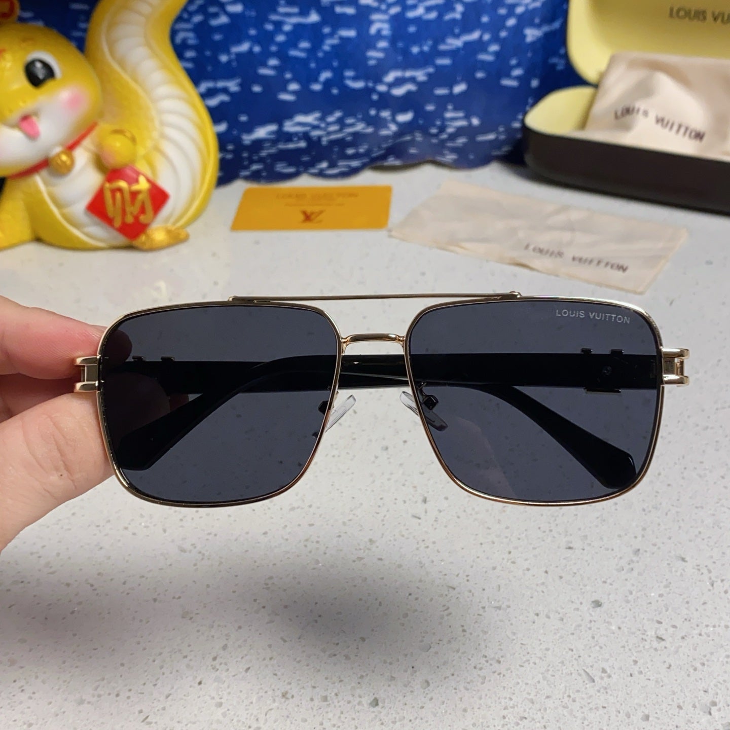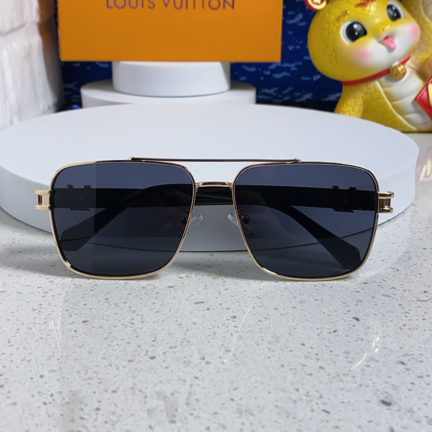 SIGNATURE SQUARE SUNGLASSES 567476 IN GOLD METAL BLACK LENSES