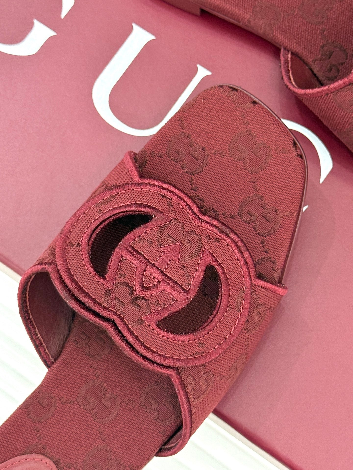SLIDE SANDALS IN RED FABRIC EMBOSSED LOGO STYLE 4