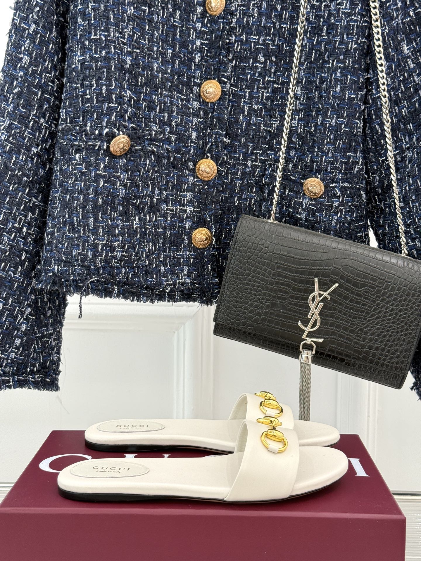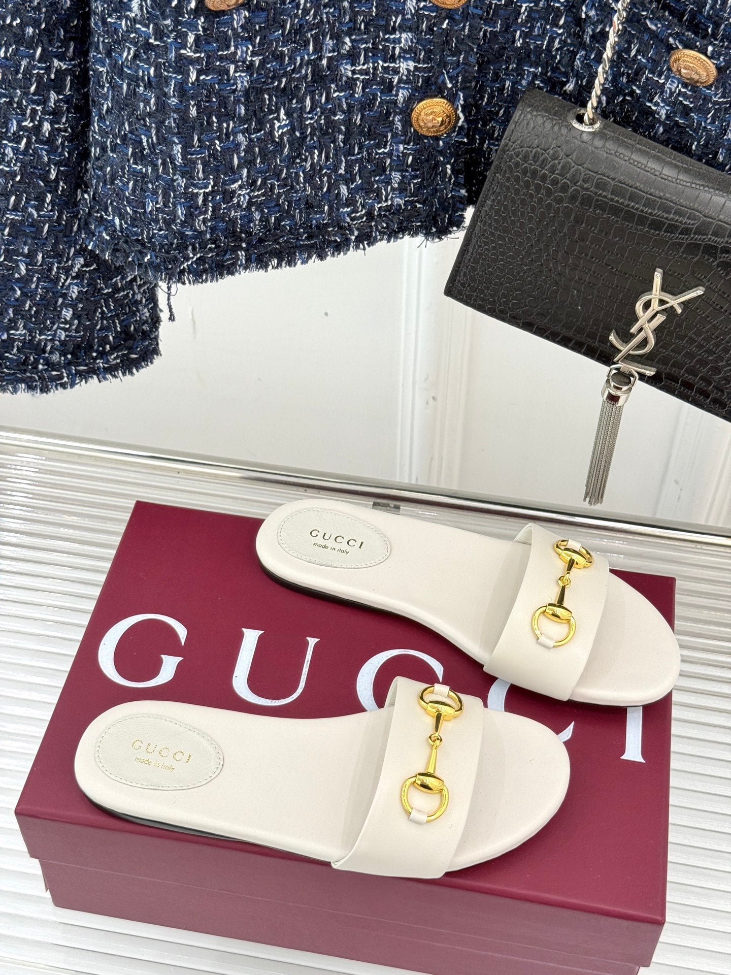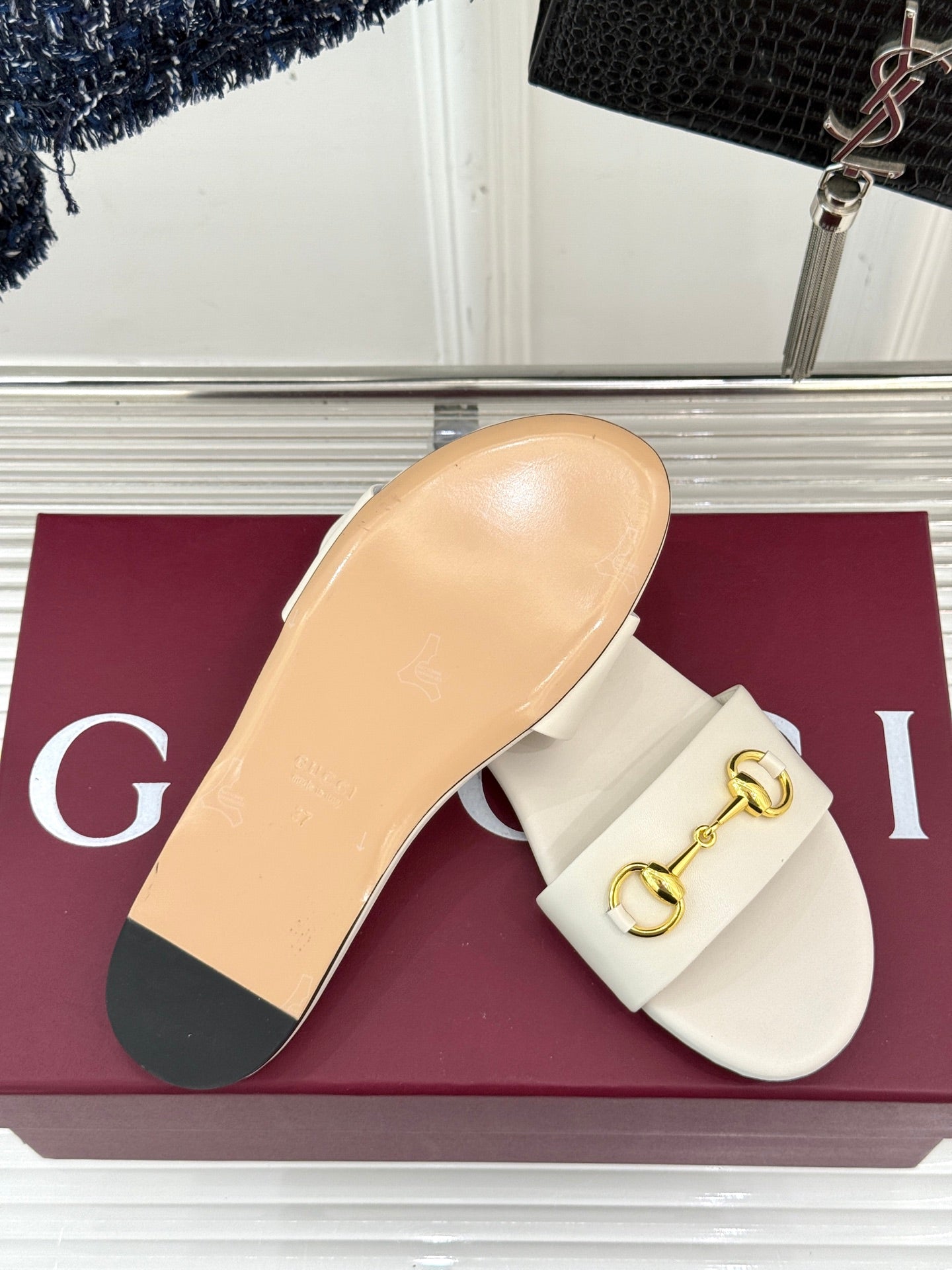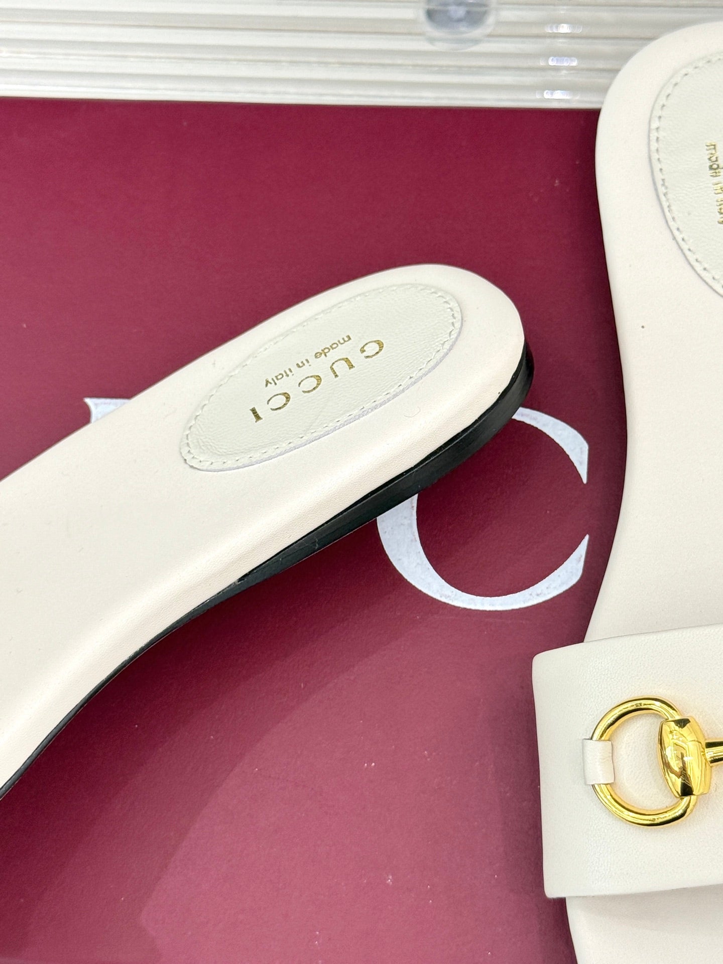 SLIDE SANDALS IN WHITE CALFSKIN WITH GOLD HARDWARE