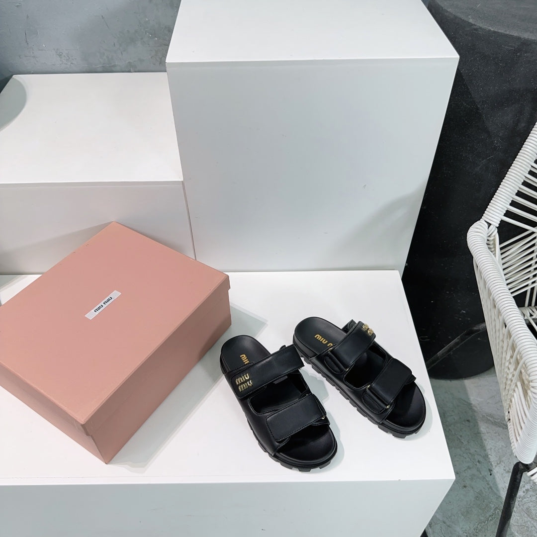Slippers Black Sheepskin With Stylized Straps