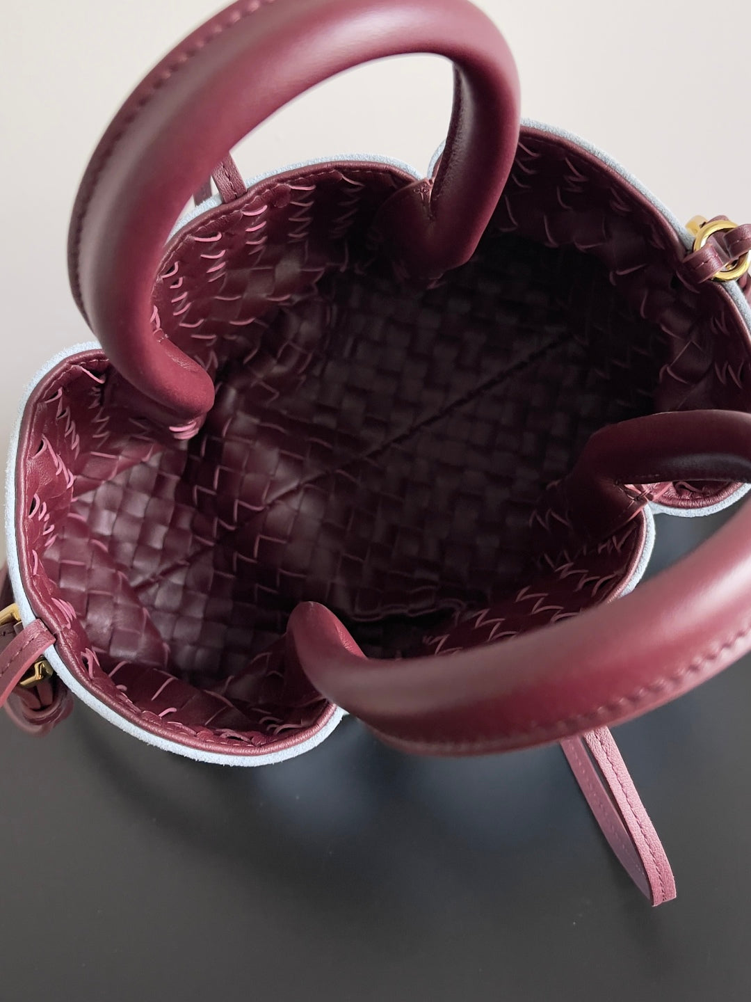 SMALL PINACOTECA REVERSIBLE TOTE BAG 24 IN MADDER BROWN LAMBSKIN AND LIGHT BLUE SUEDE