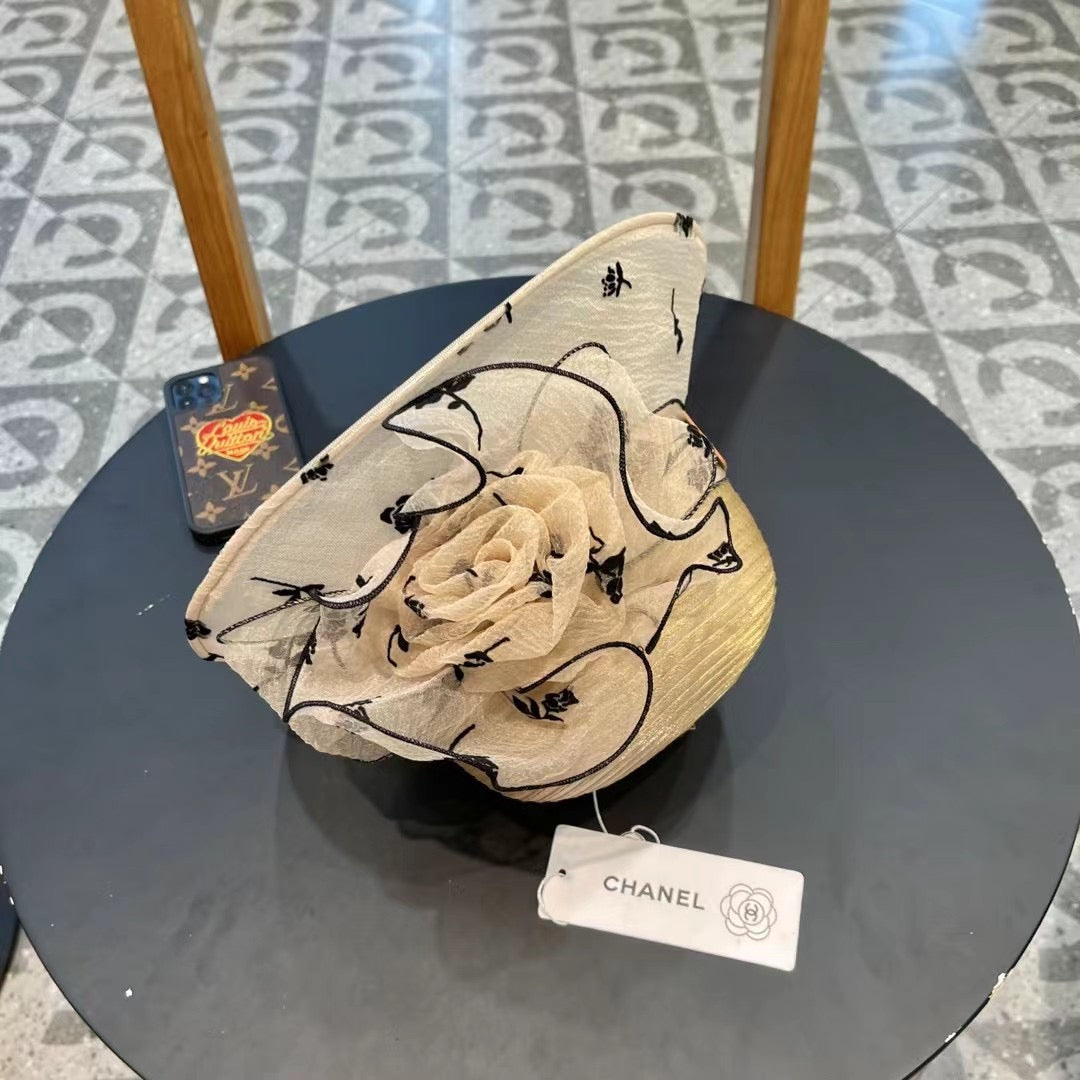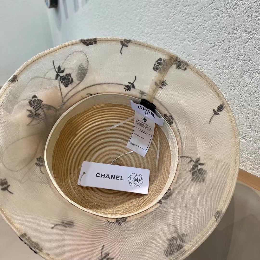 STRAW HAT WITH CHIFFON FLOWER BEIGE 672761