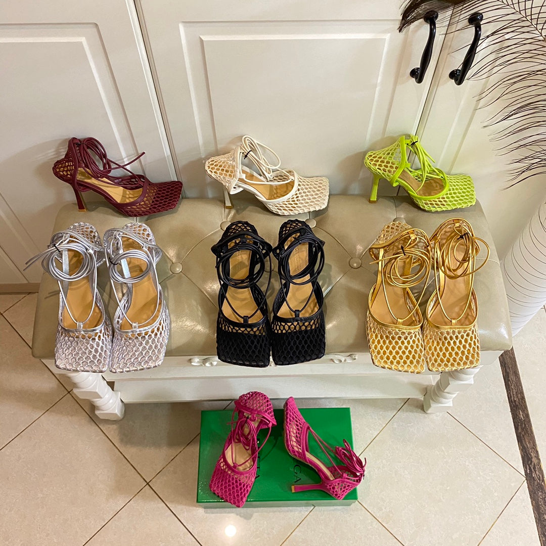 STRETCH LACE-UP SANDAL IN BLACK METALLIZED MESH AND LEATHER 9 CM