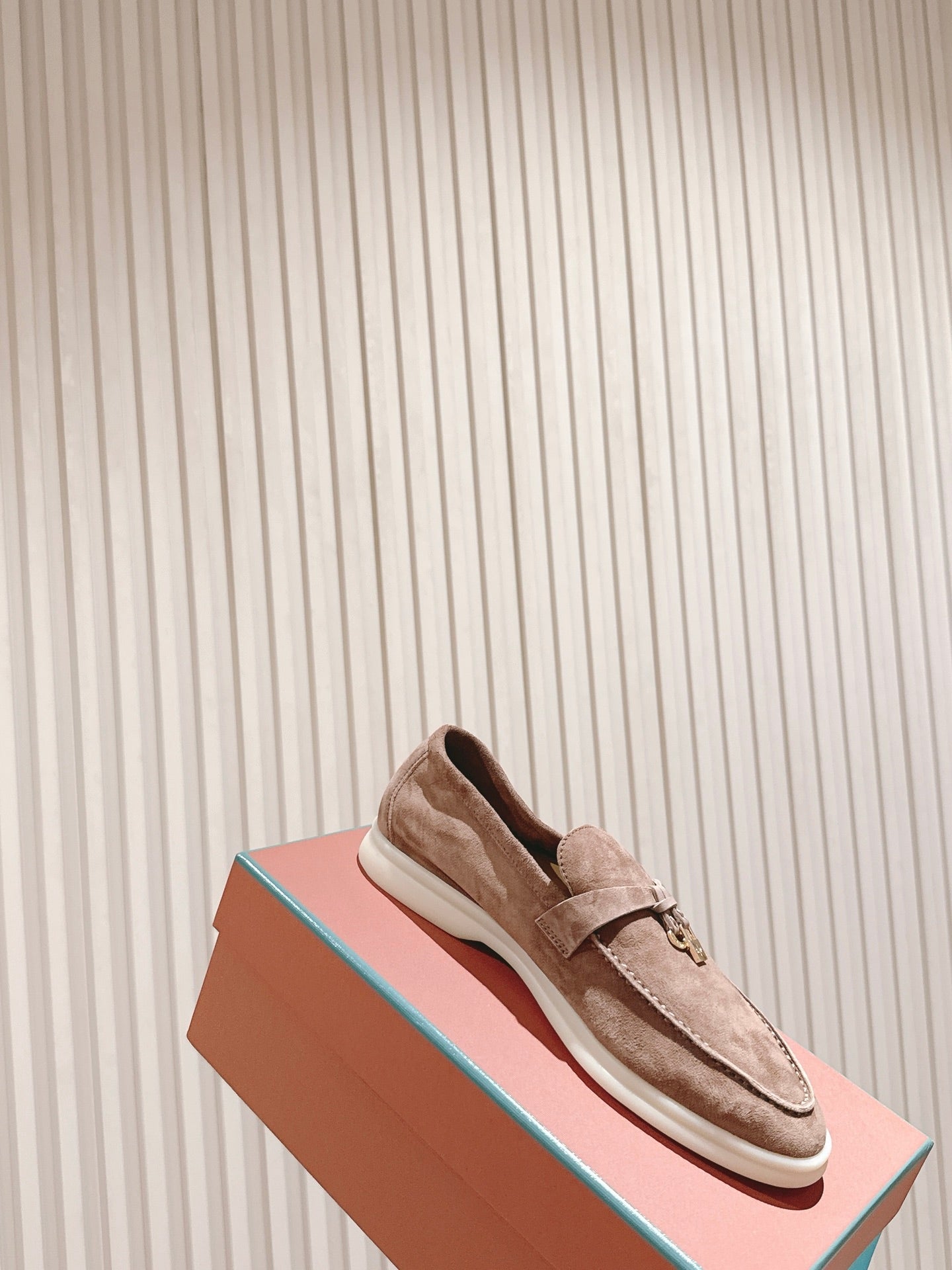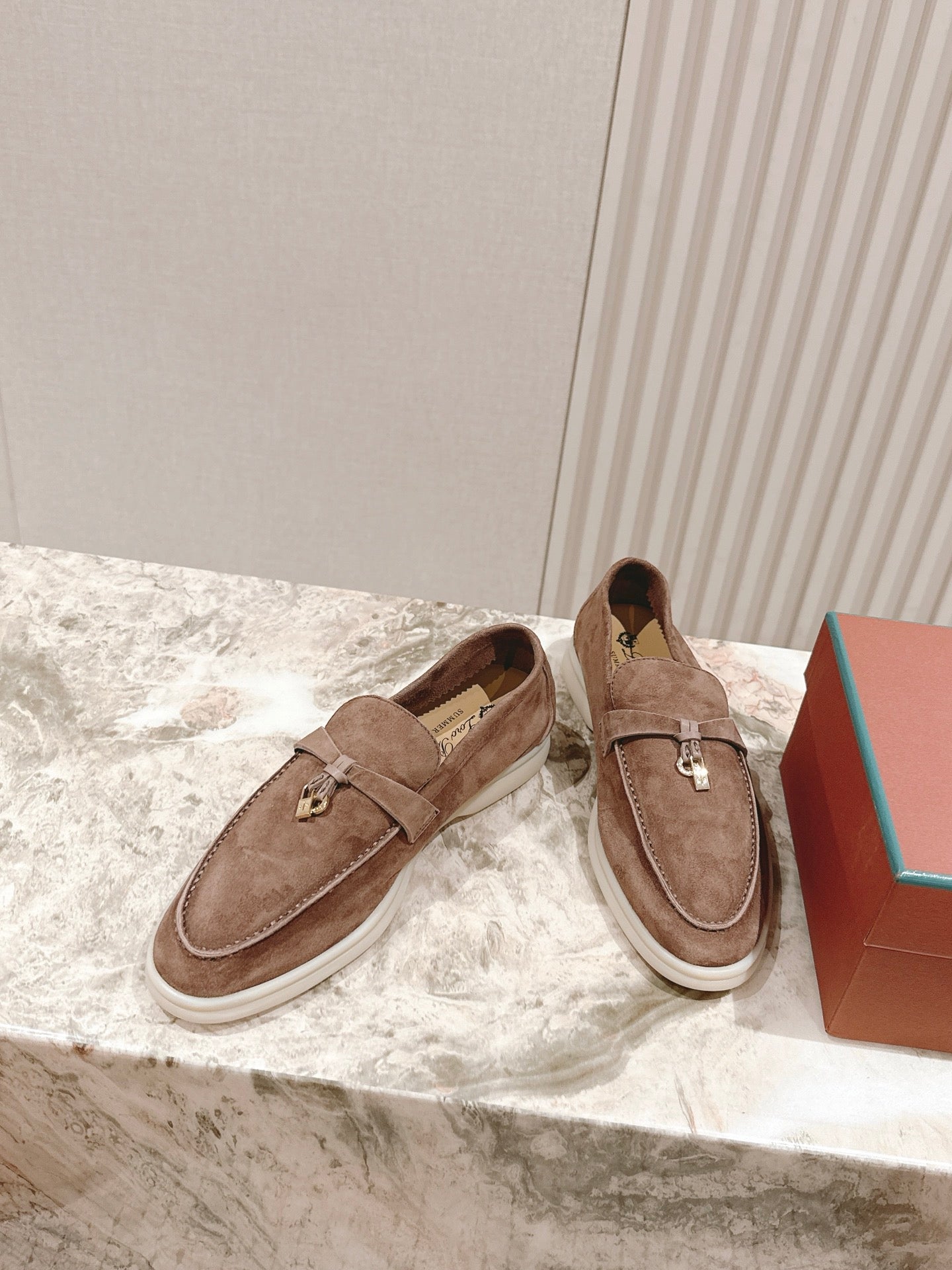 SUMMER WALK LOAFERS BROWN SUEDE WITH GOLD PADLOCK CHARM