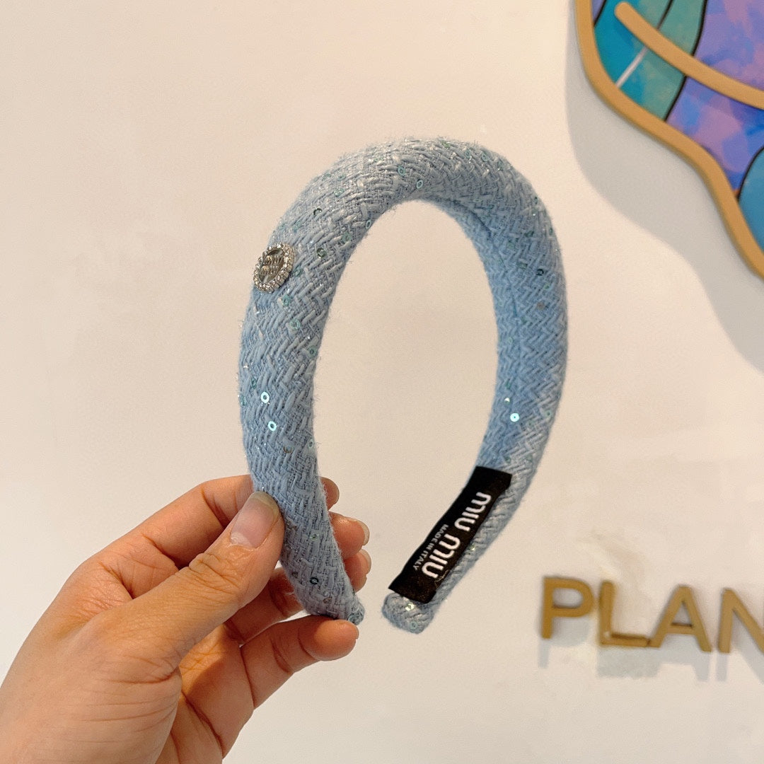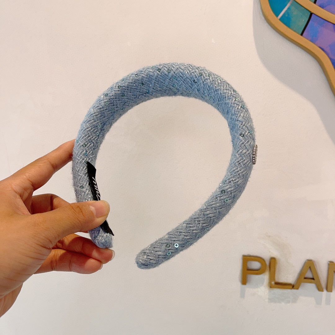 THICK HEADBAND IN SKY BLUE TWEED EMBELLISHED SEQUINS 406044