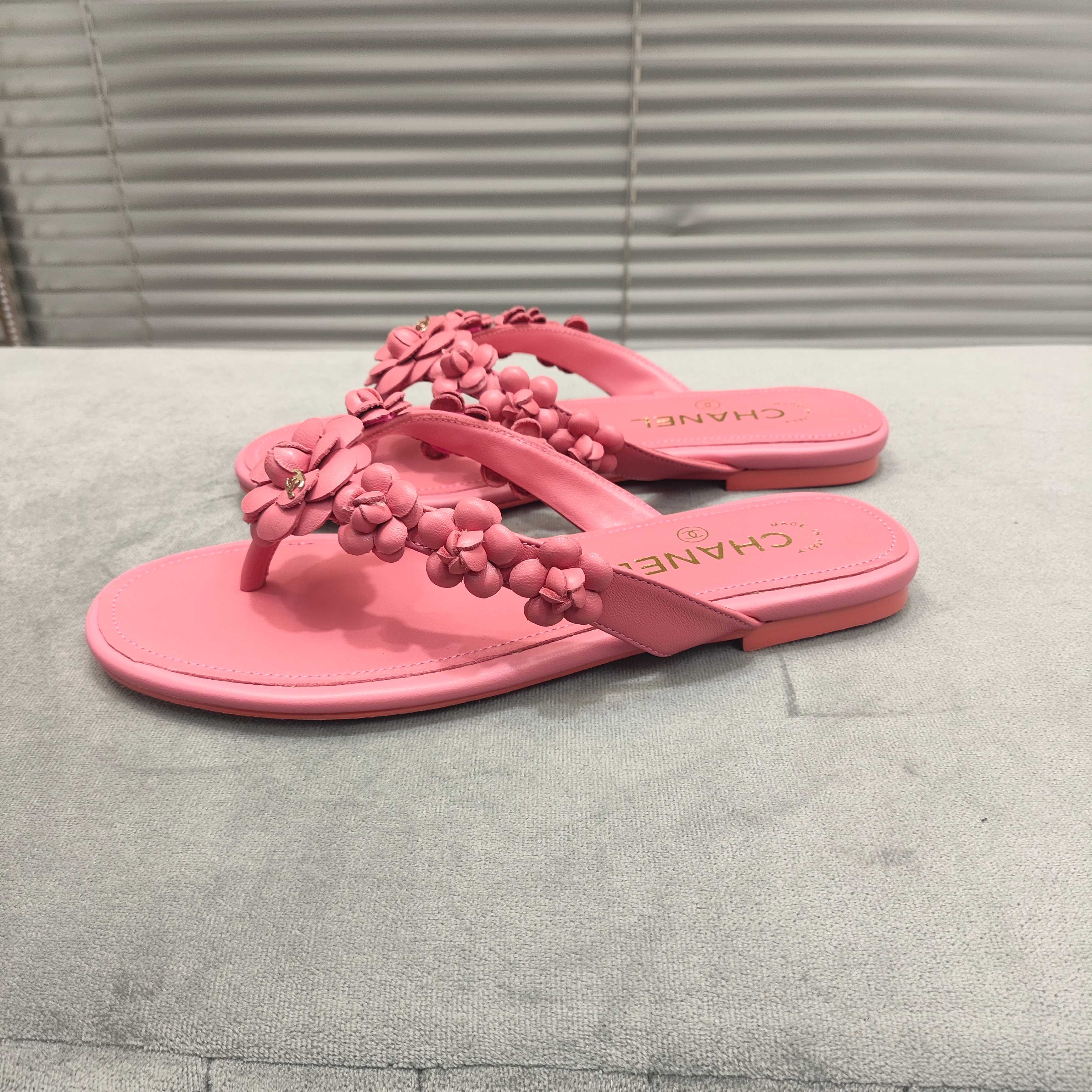 THONG SLIPPERS CAMELLIA IN  PINK CALFSKIN