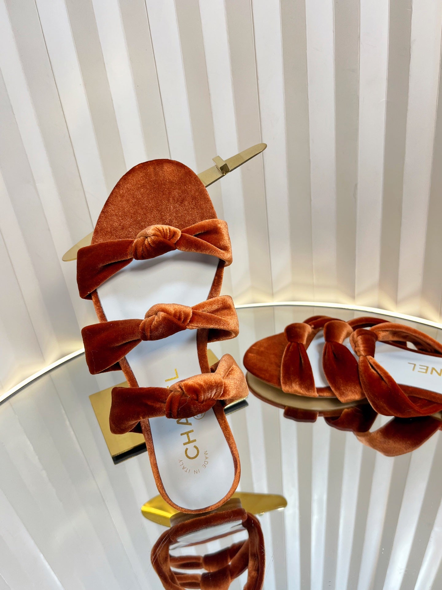 THREE STRAPS MULE IN RUSSET BROWN VELVET
