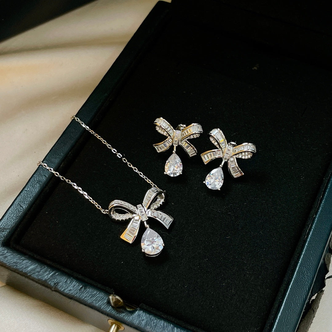 TILDA BOW BAGUETTE CUT SILVER DIAMOND DROP NECKLACE