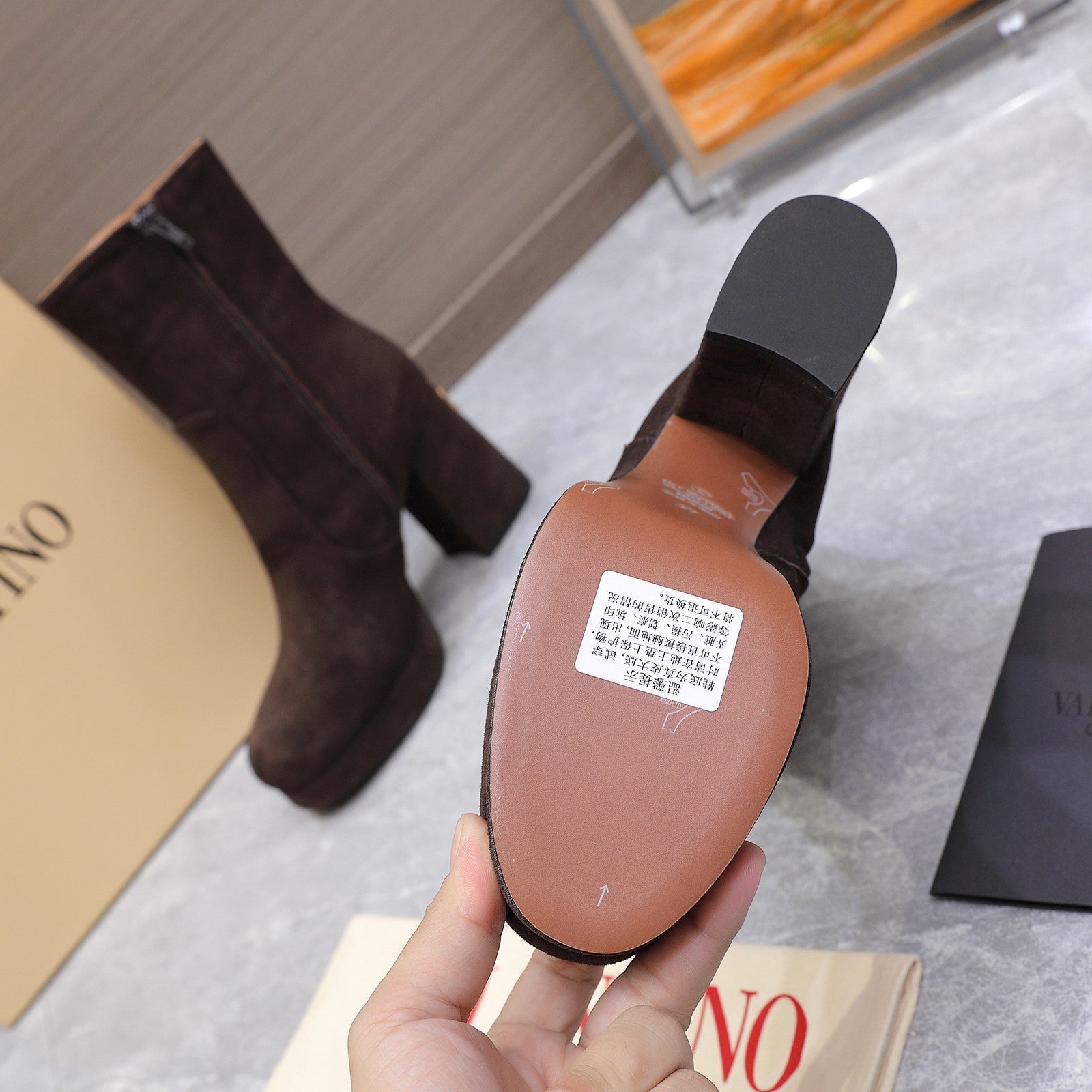 VALENTINO 25S ANKLE BOOTS WITH ZIPPER 90 MM IN DARK BROWN SUEDE