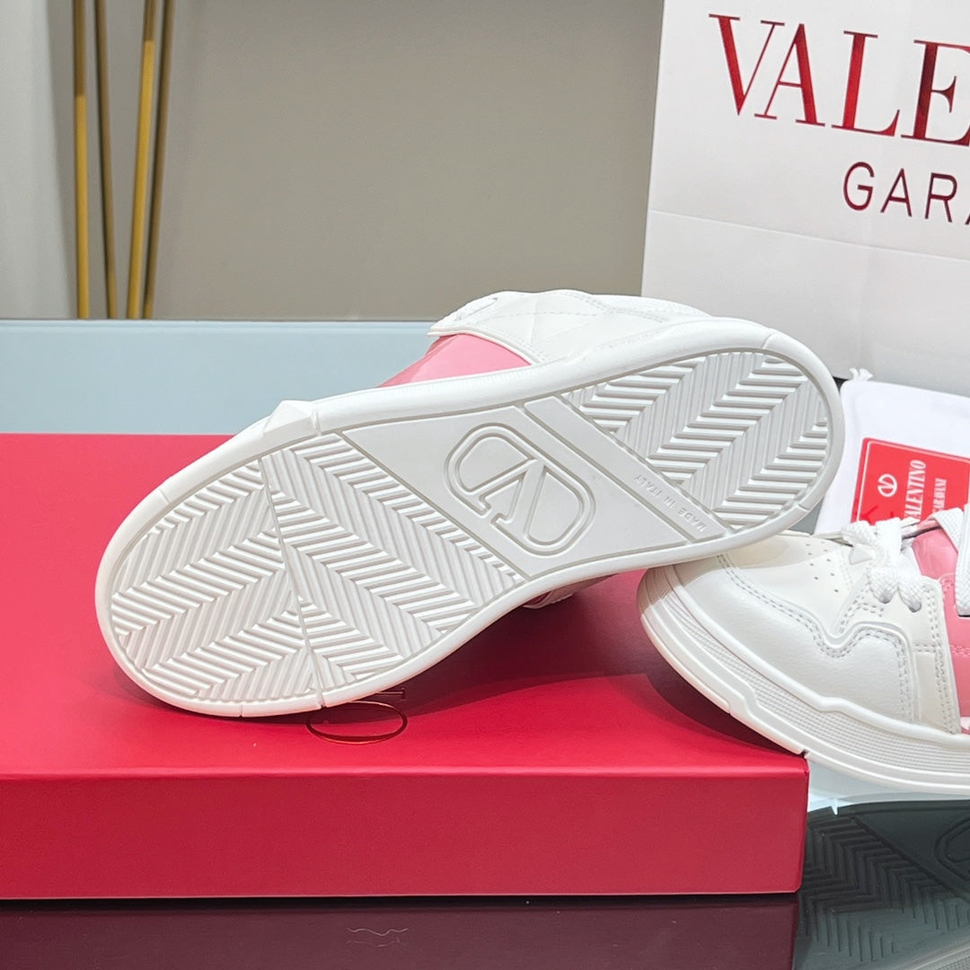 VALENTINO 25S GARAVANI OPEN SKATE SNEAKERS IN PEACH PINK LAMBSKIN STYLE 11
