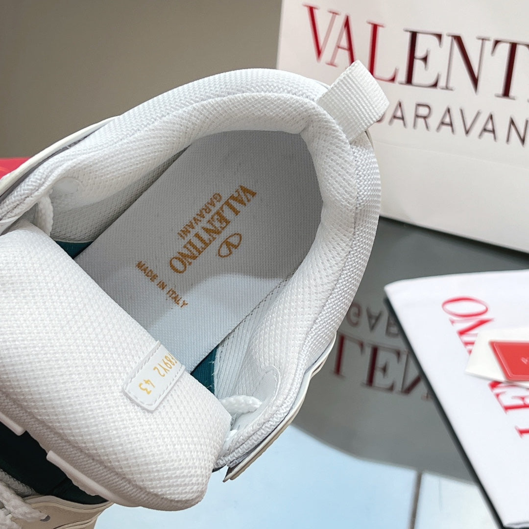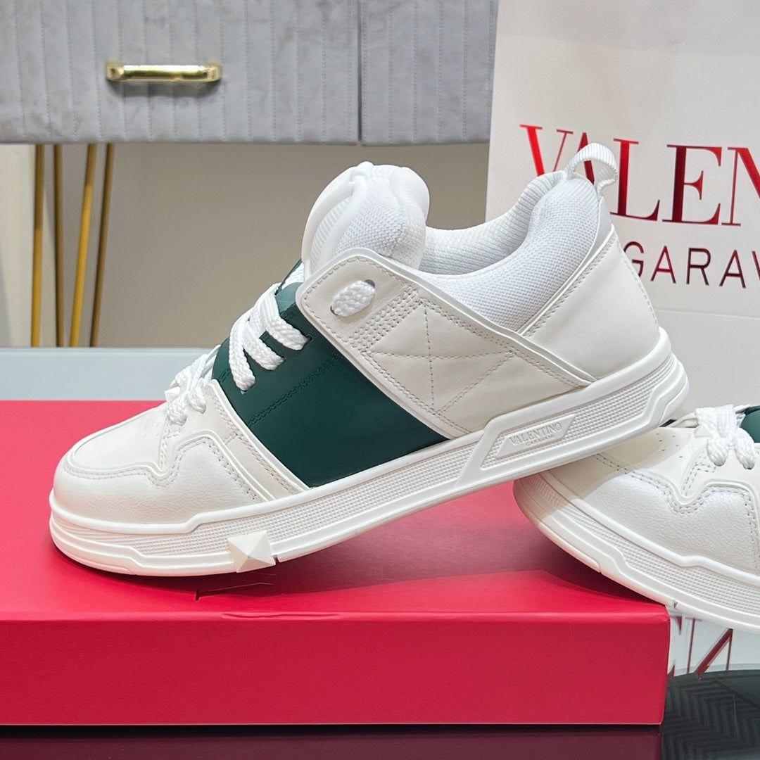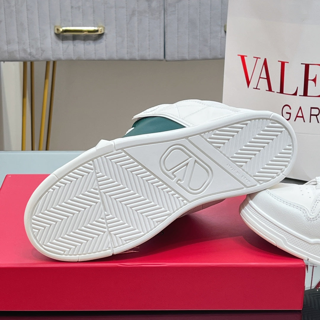 VALENTINO 25S GARAVANI OPEN SKATE SNEAKERS IN WHITE MIX DARK GREEN LAMBSKIN STYLE 12