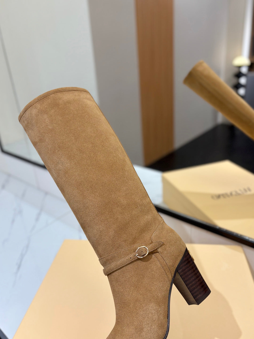 VALENTINO 25S GARAVANI PATTIE KNEE-HIGH BOOTS 80 MM IN LIGHT BROWN SUEDE