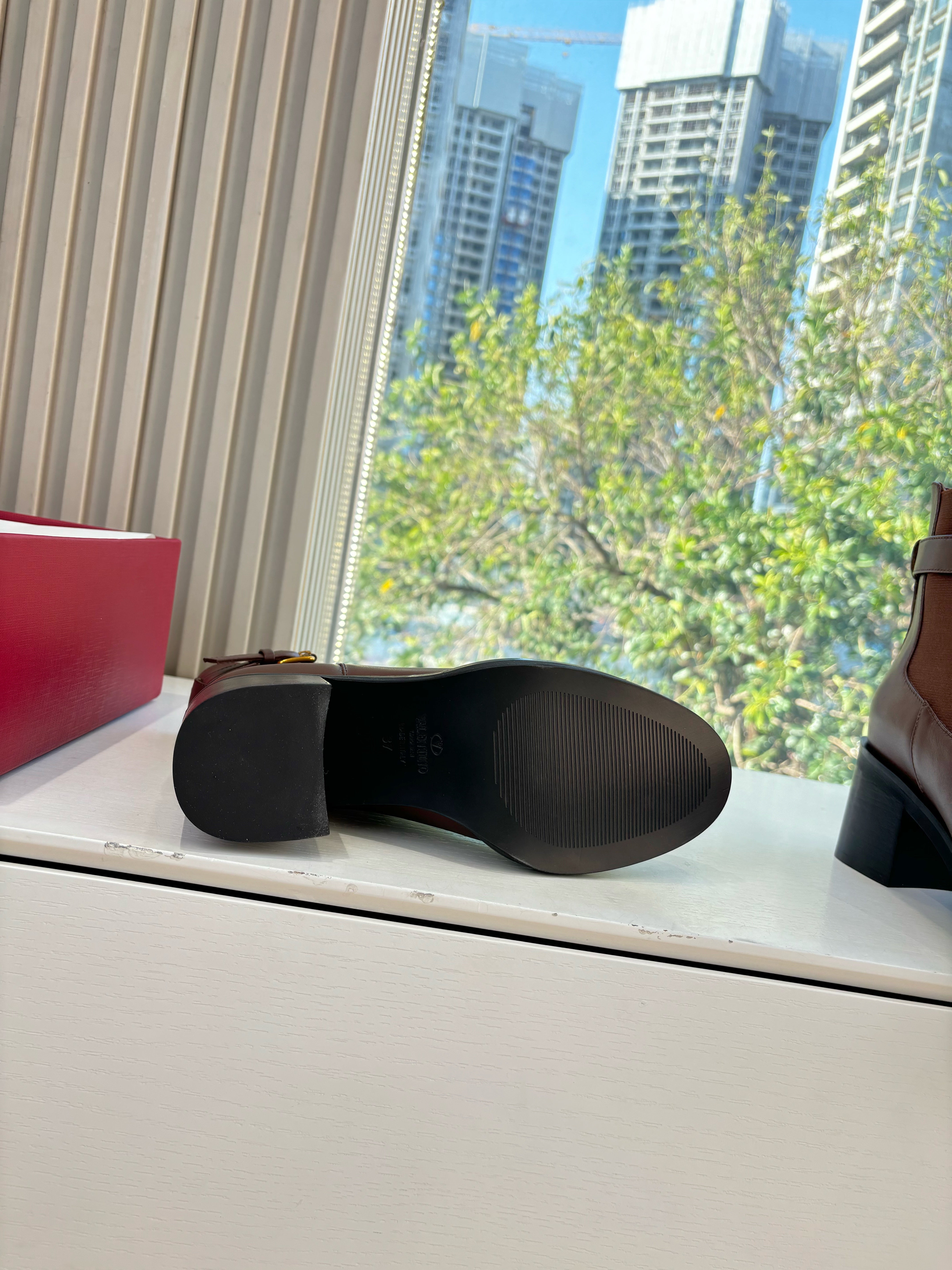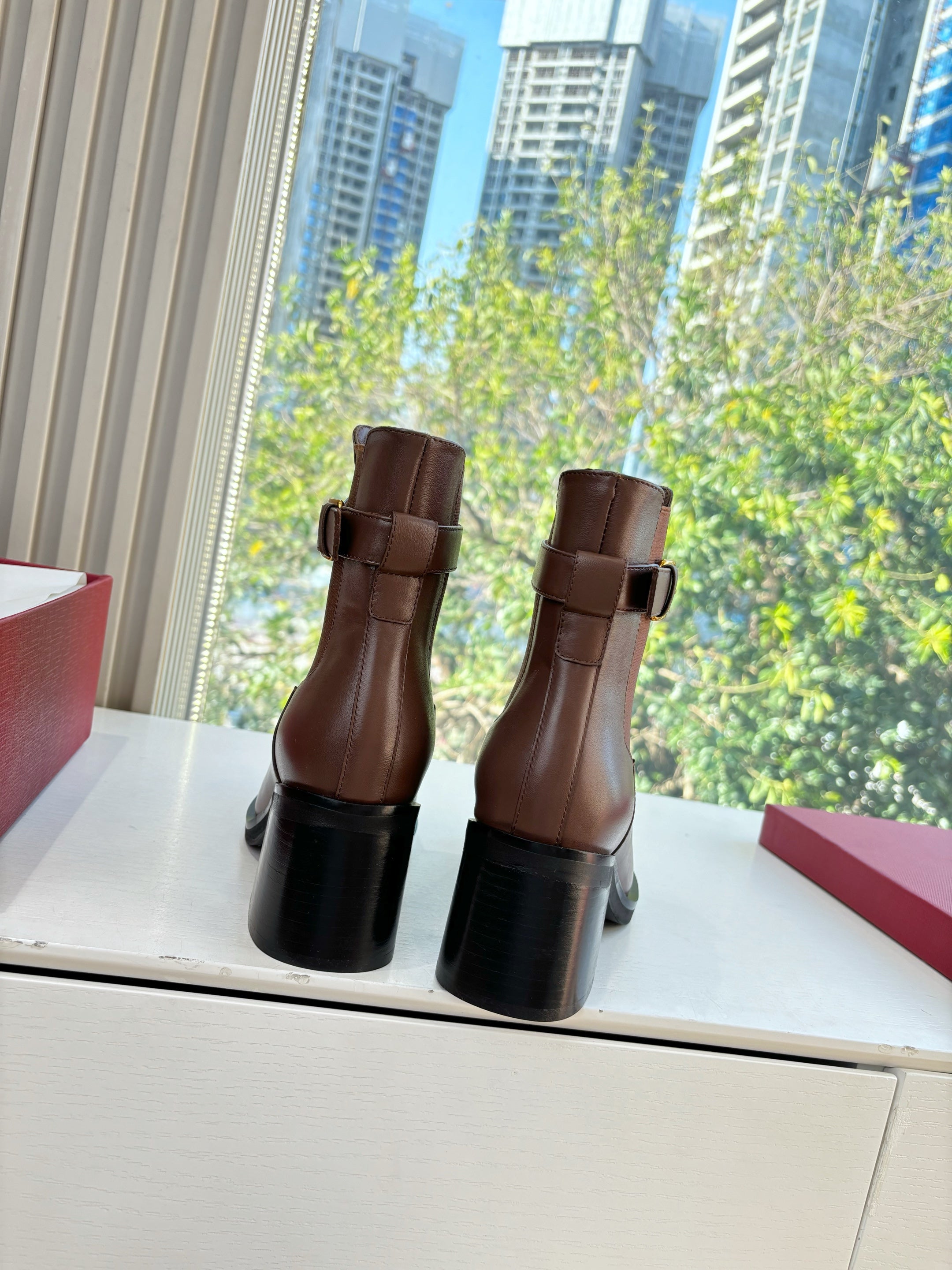 VALENTINO 25S SIGNATURE LOGO BOOTS 60 MM IN BROWN CALFSKIN WITH GOLD HARDWARE