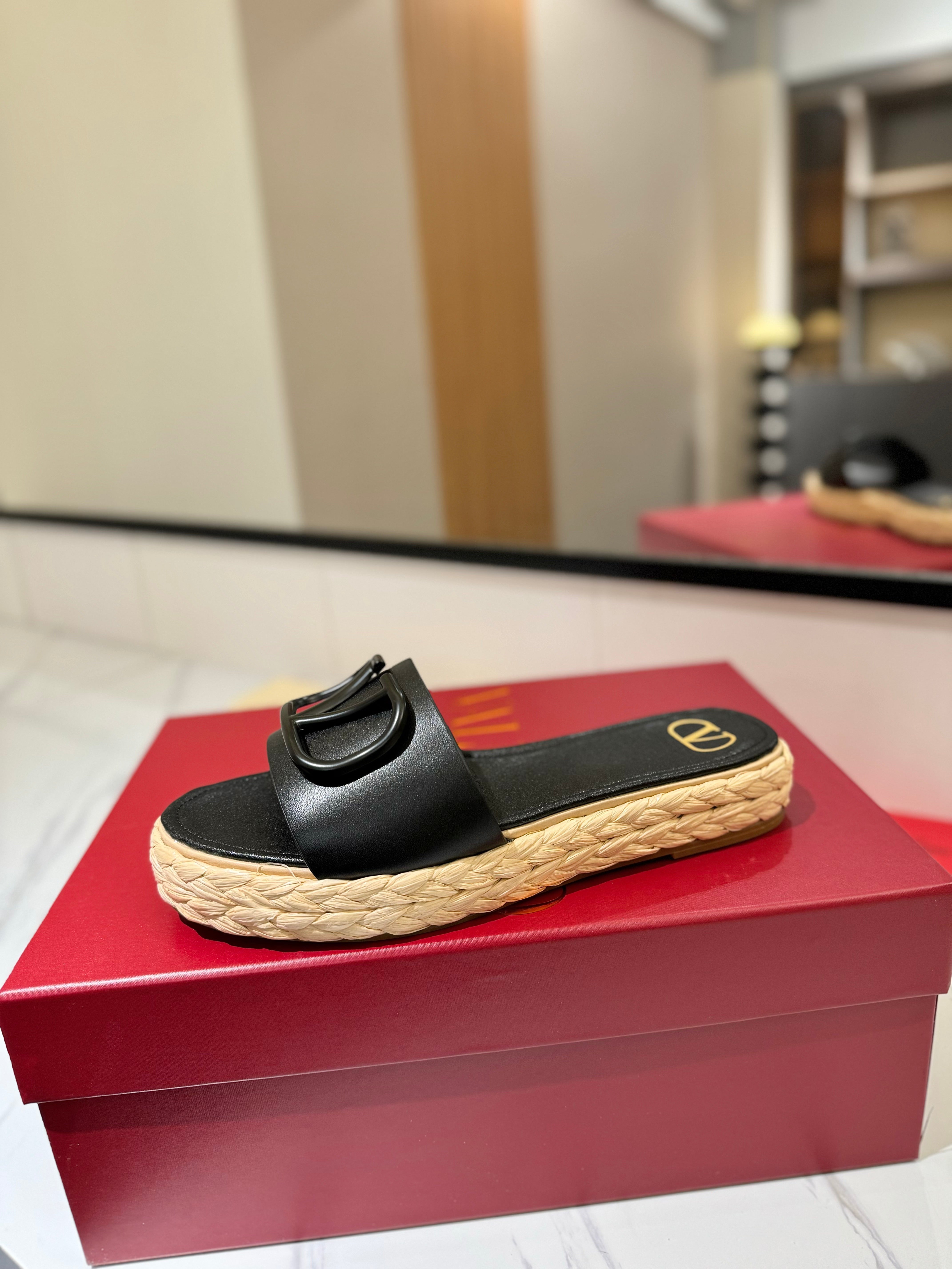 VLTN ESPADRILLE SLIDES 25S IN BLACK LAMBSKIN STYLE 11