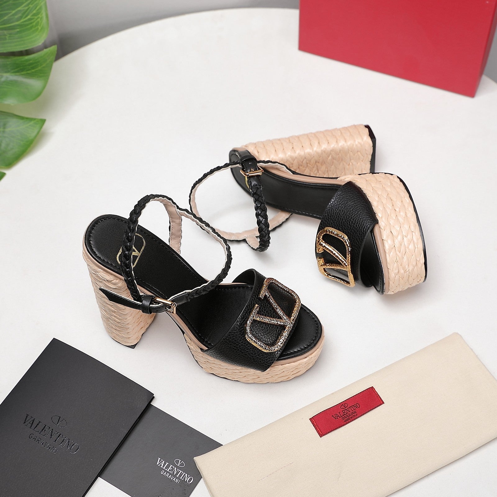 VLTN ESPADRILLE WEDGE SANDALS 25S 130 MM IN BLACK LAMBSKIN WITH GOLD HARDWARE