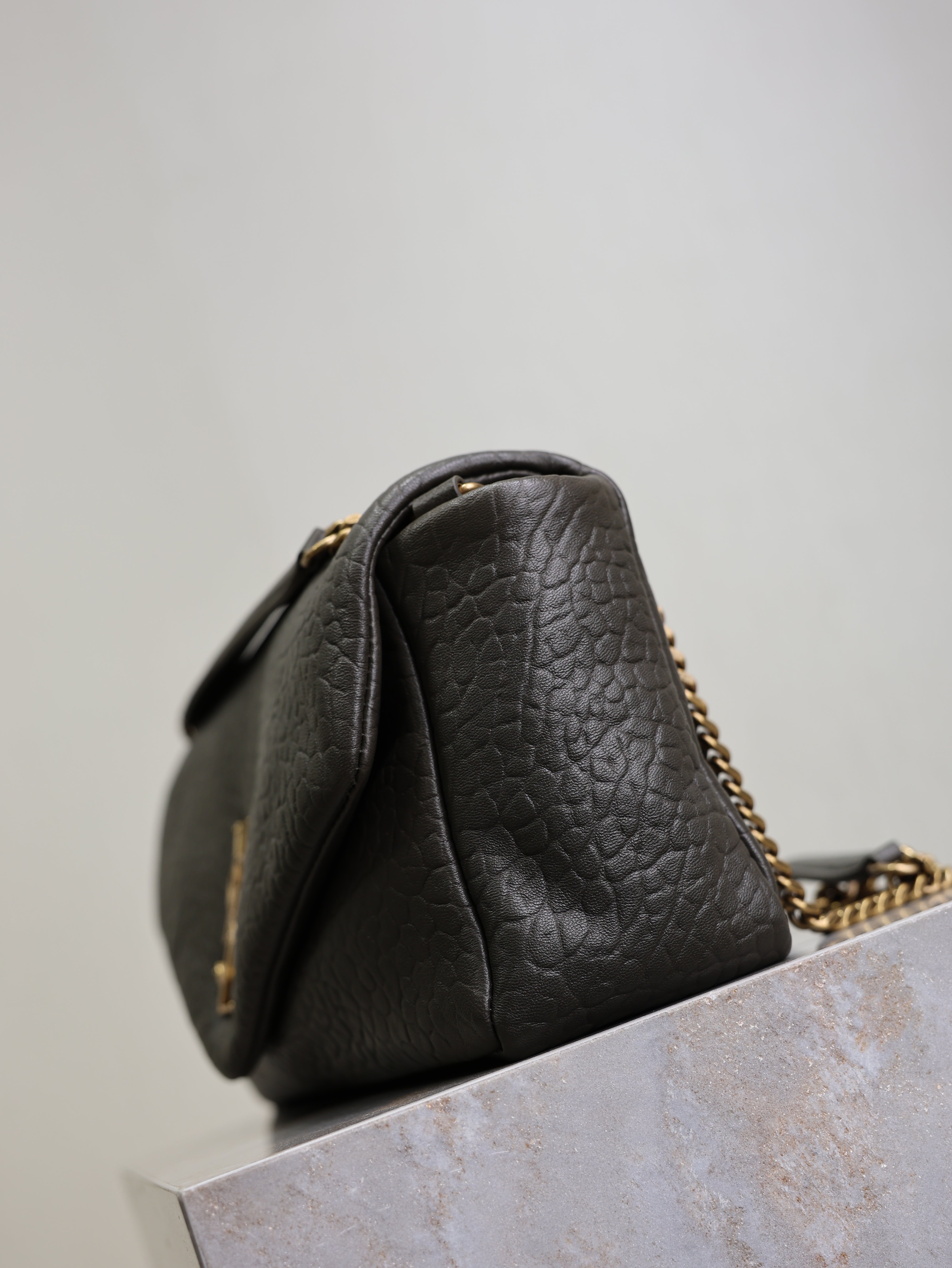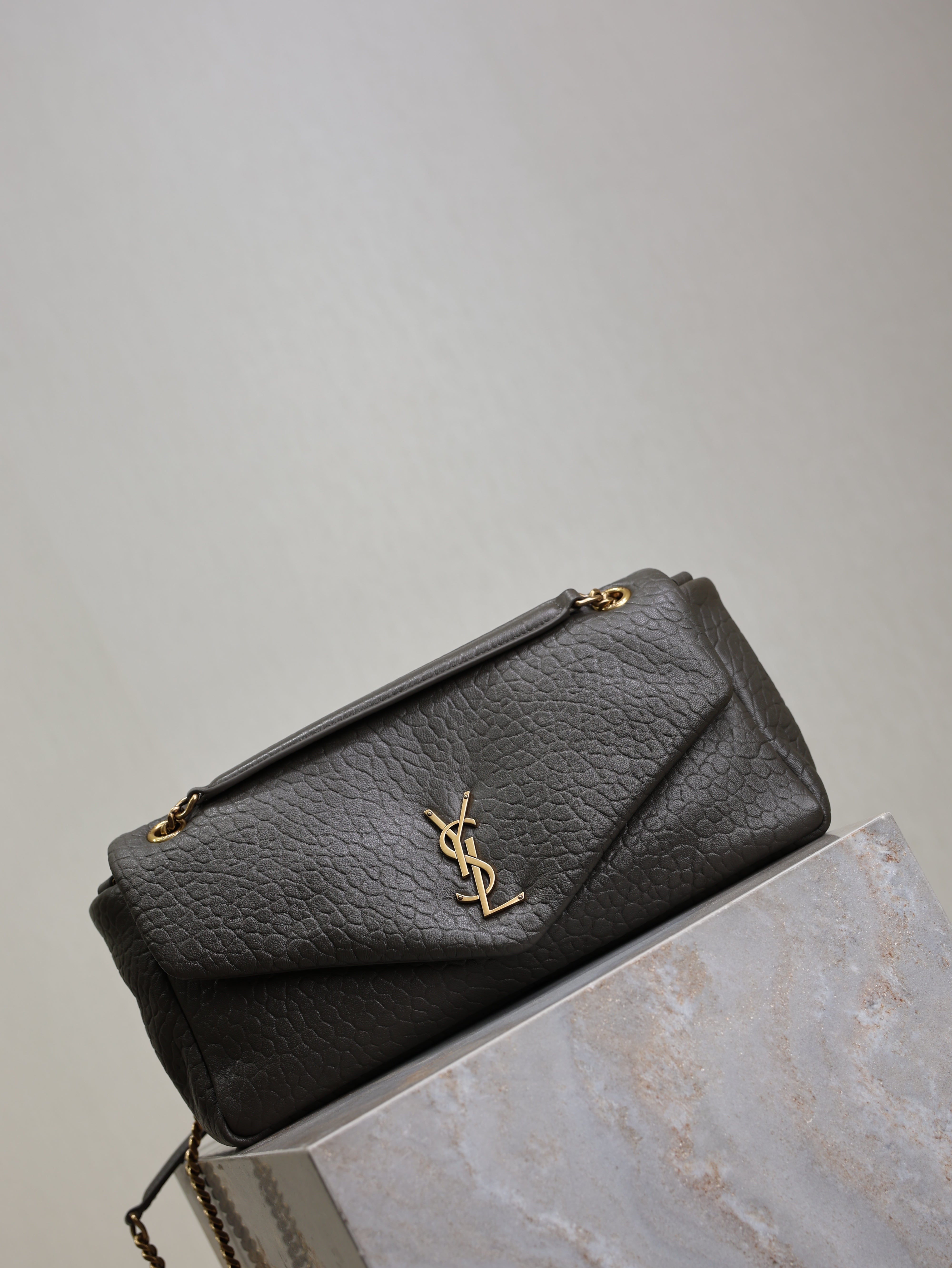 YSL 25S CALYPSO 30 IN DARK OLIVE GRAINED CALFSKIN GOLD HARDWRE