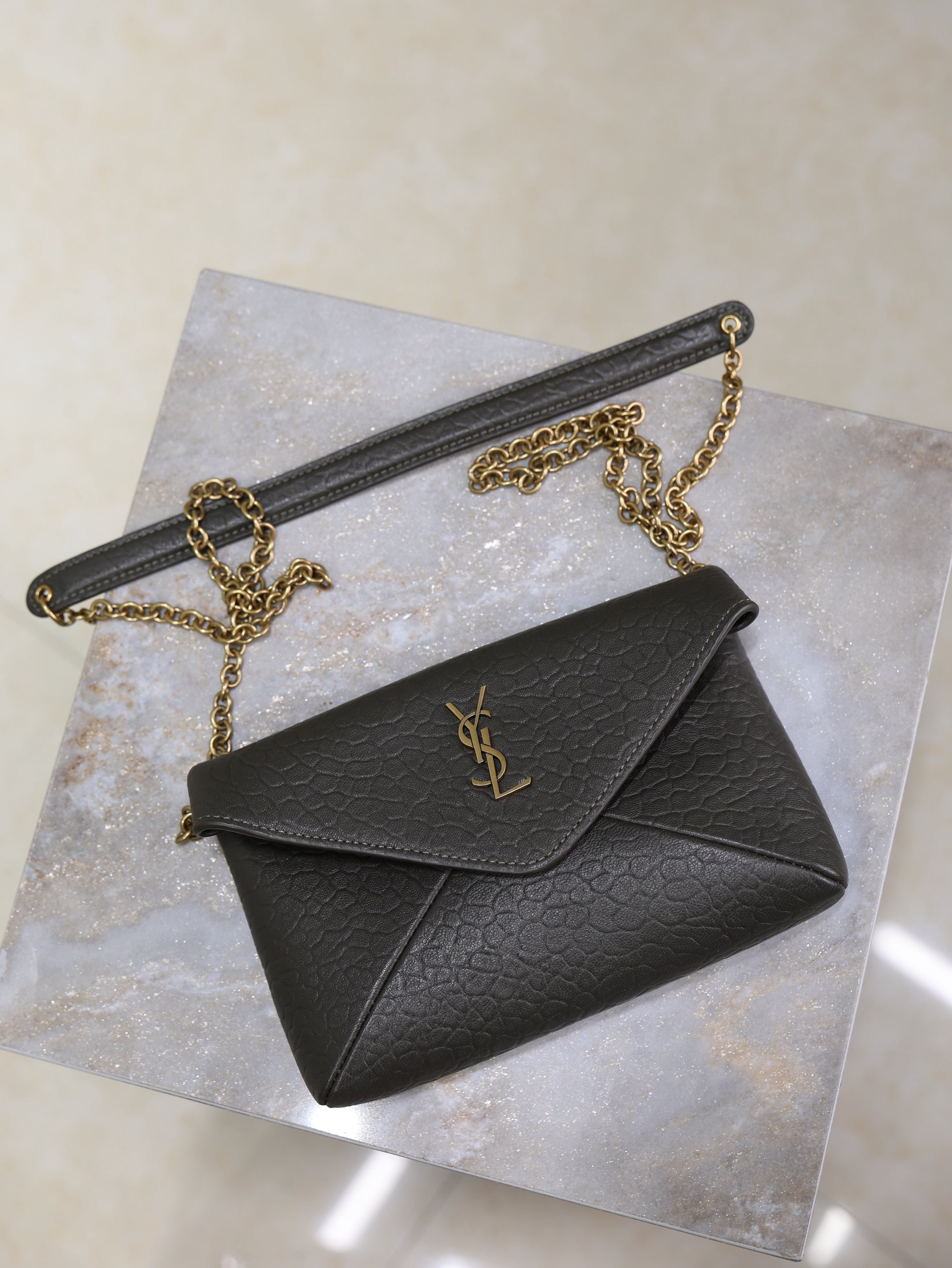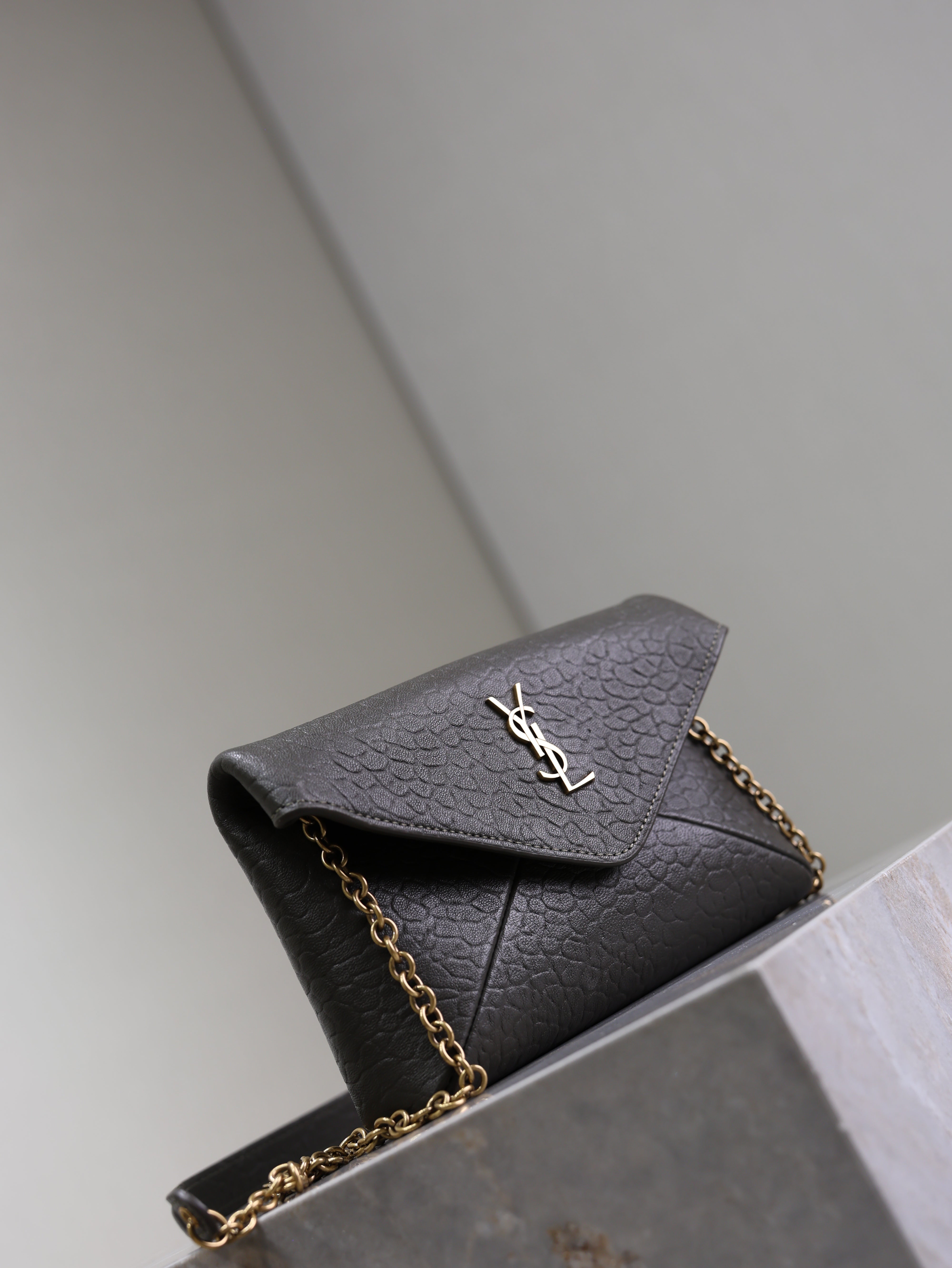 YSL 25S CALYPSO MINI 19 IN CHARCOAL GRAY LAMBSKIN GOLD HARDWRE