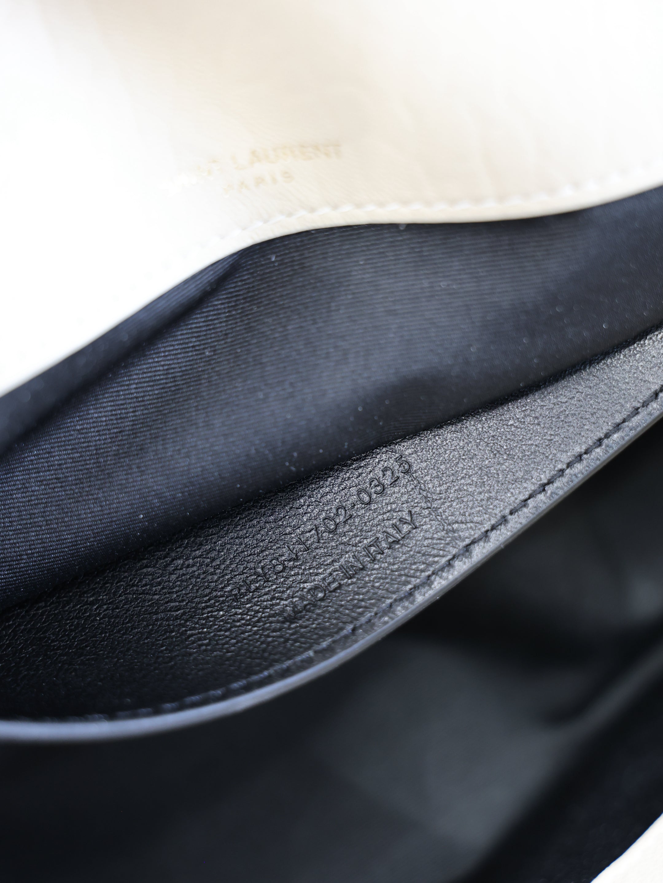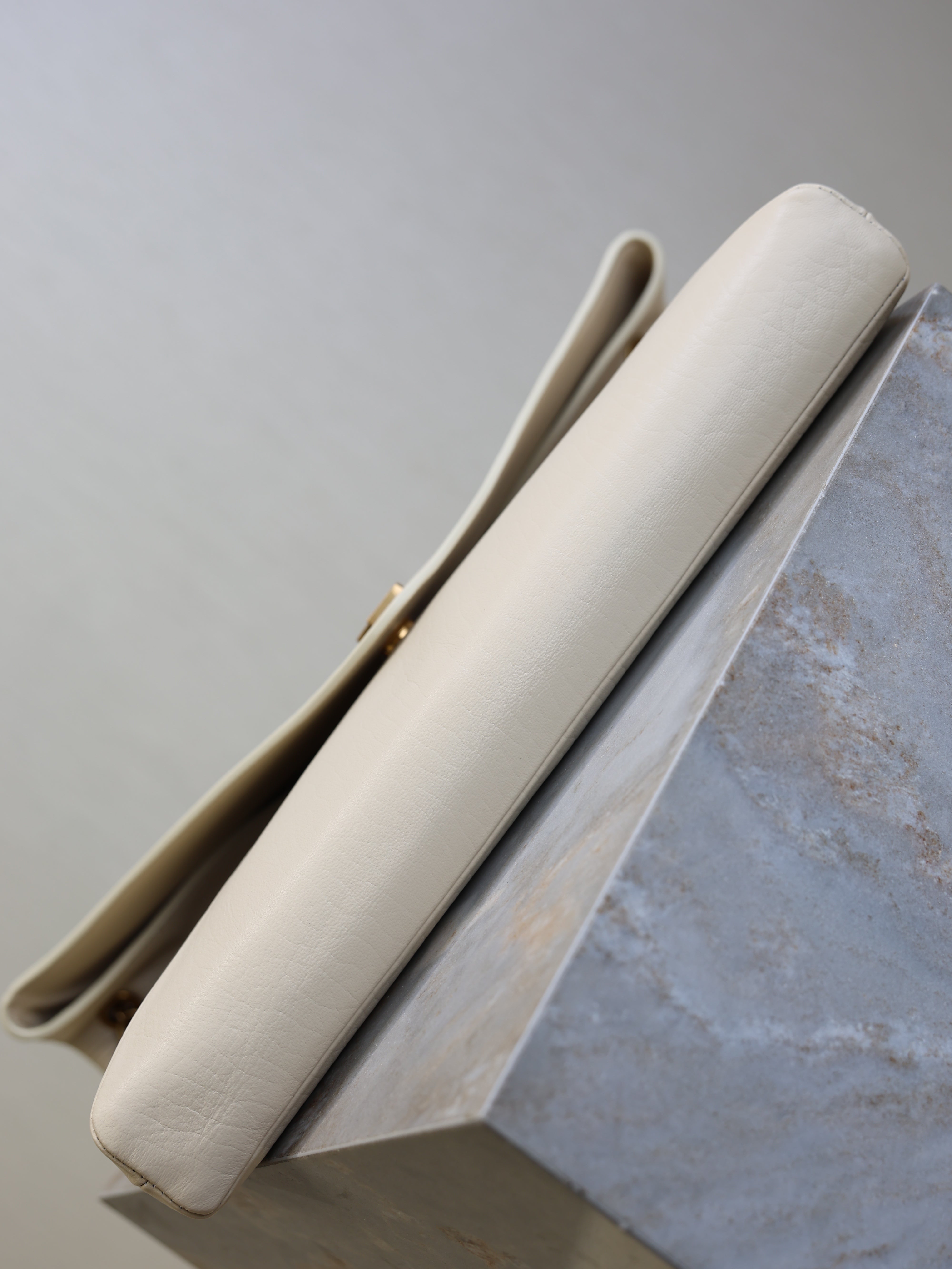 YSL 25S CASSANDRE ENVELOPE MESSENGER 35 IN BLANC VINTAGE LAMBSKIN GOLD HARDWRE