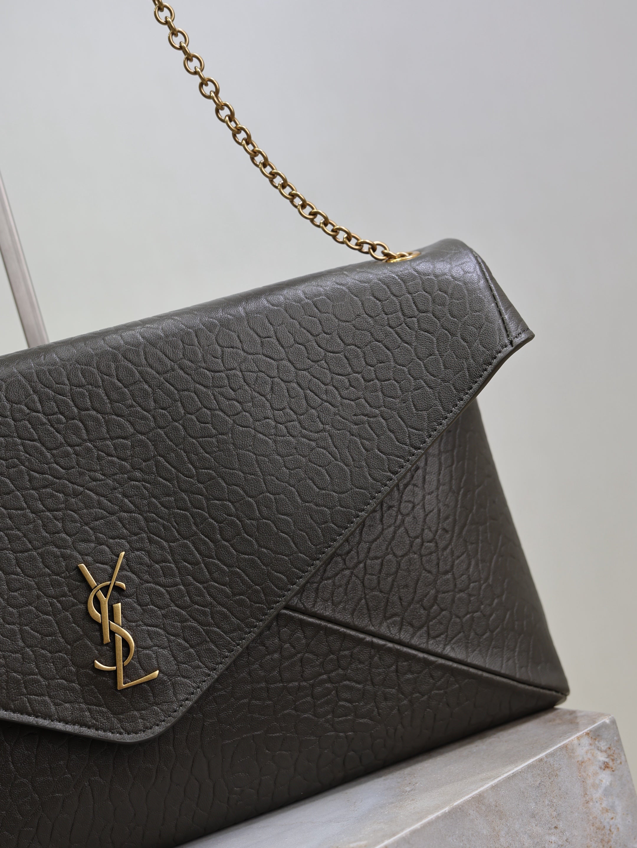 YSL 25S CASSANDRE ENVELOPE MESSENGER 35 IN LIGHT MUSK LAMBSKIN GOLD HARDWRE