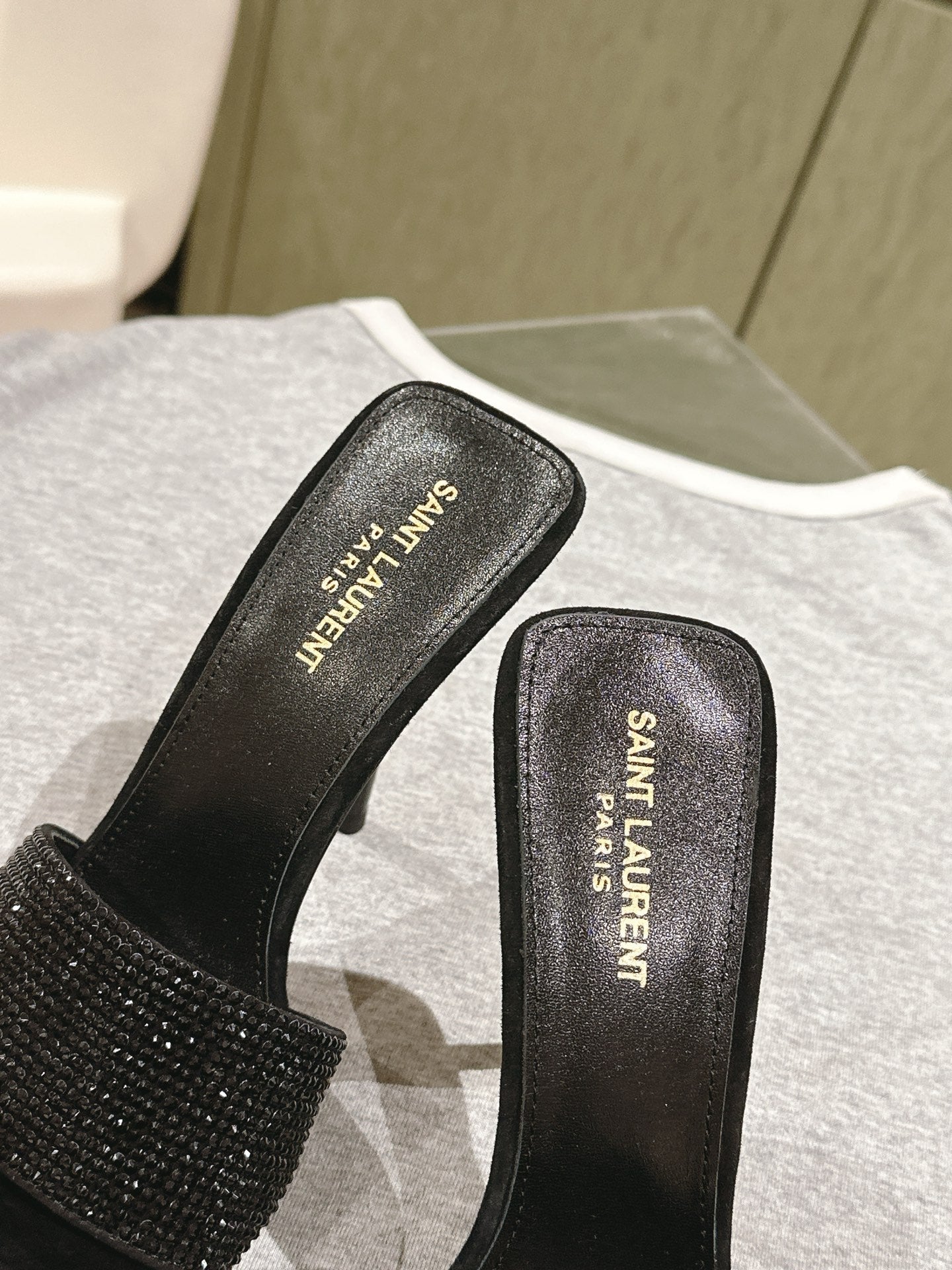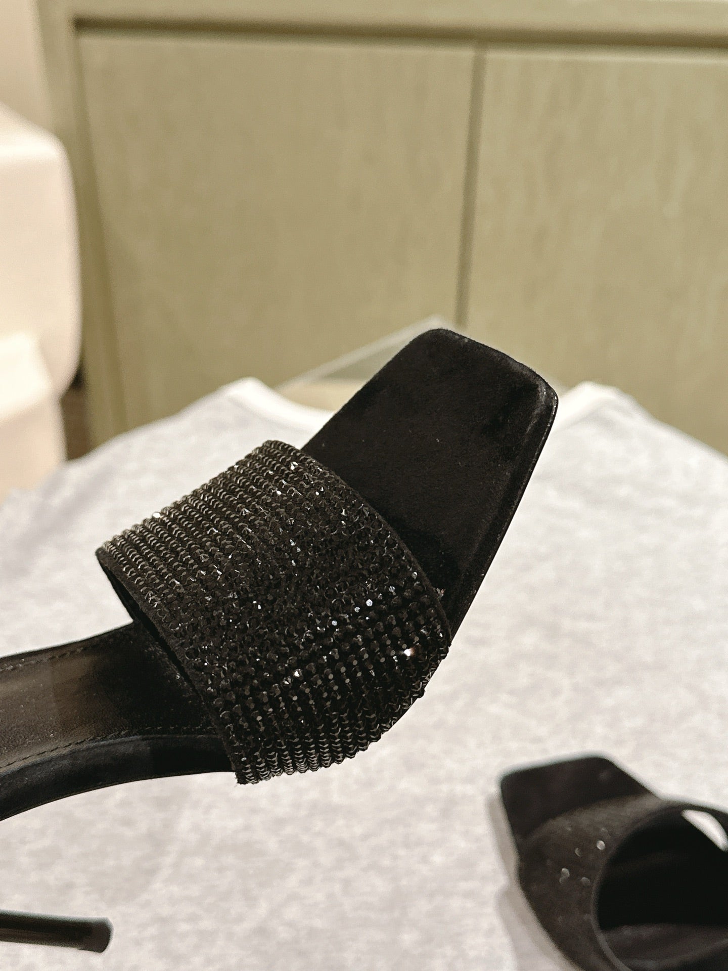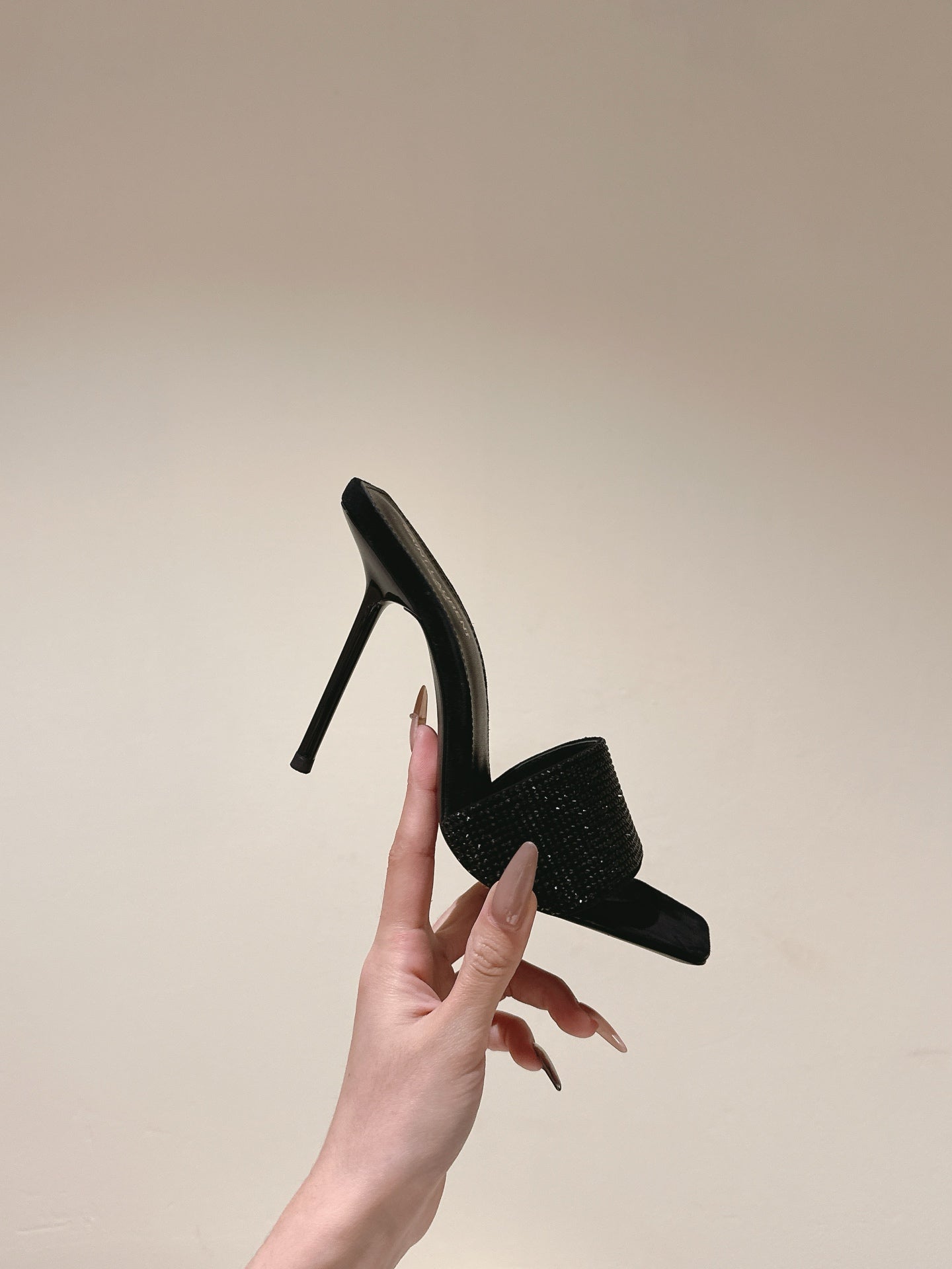 YSL 25S HEELED SANDALS 100 MM IN BLACK LAMBSKIN WITH RHINESTONE-EMBELLISHED STRAP