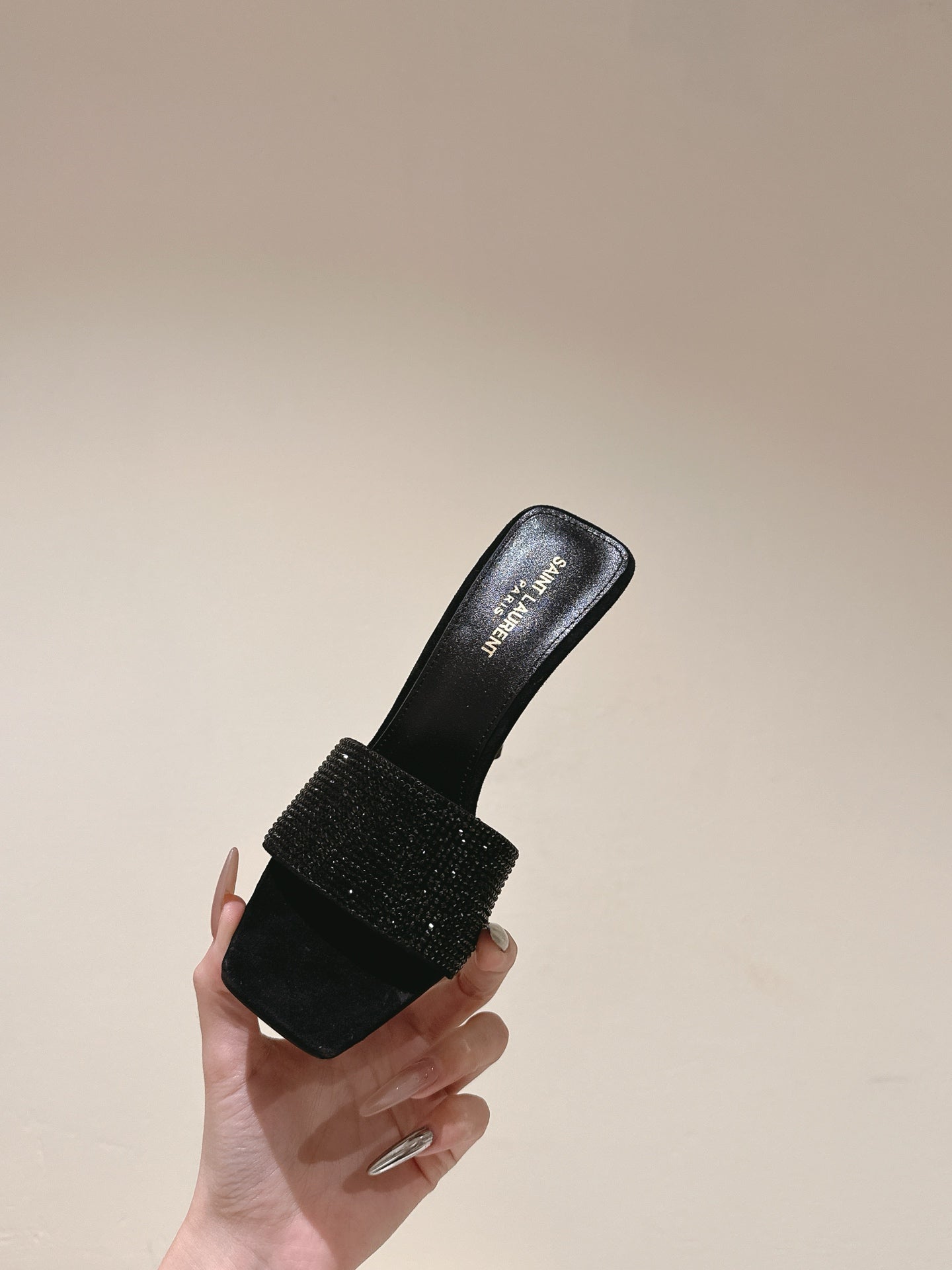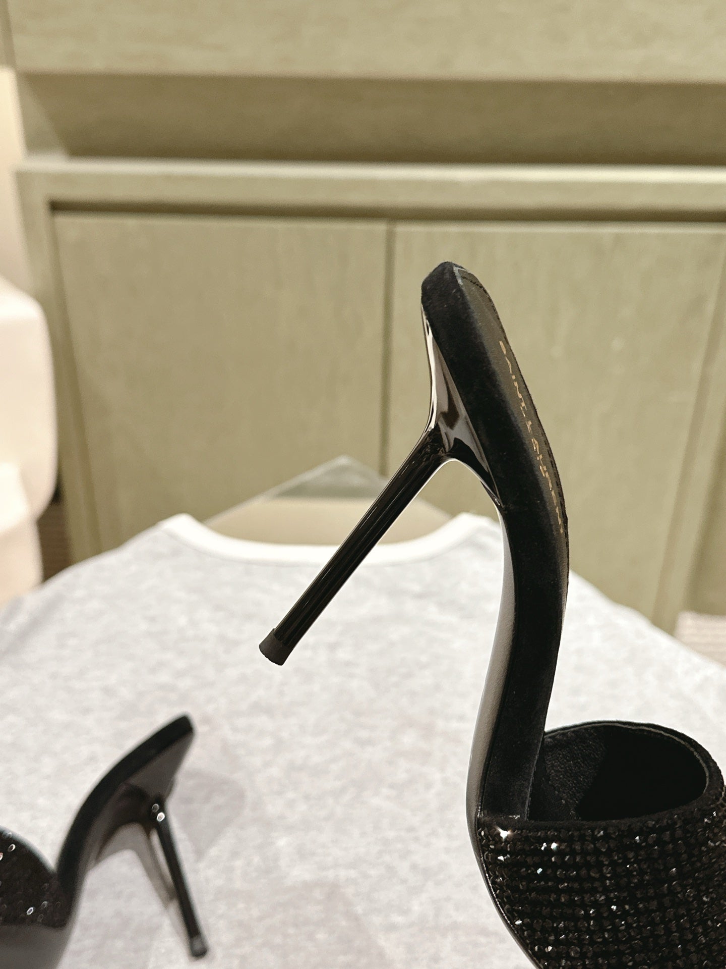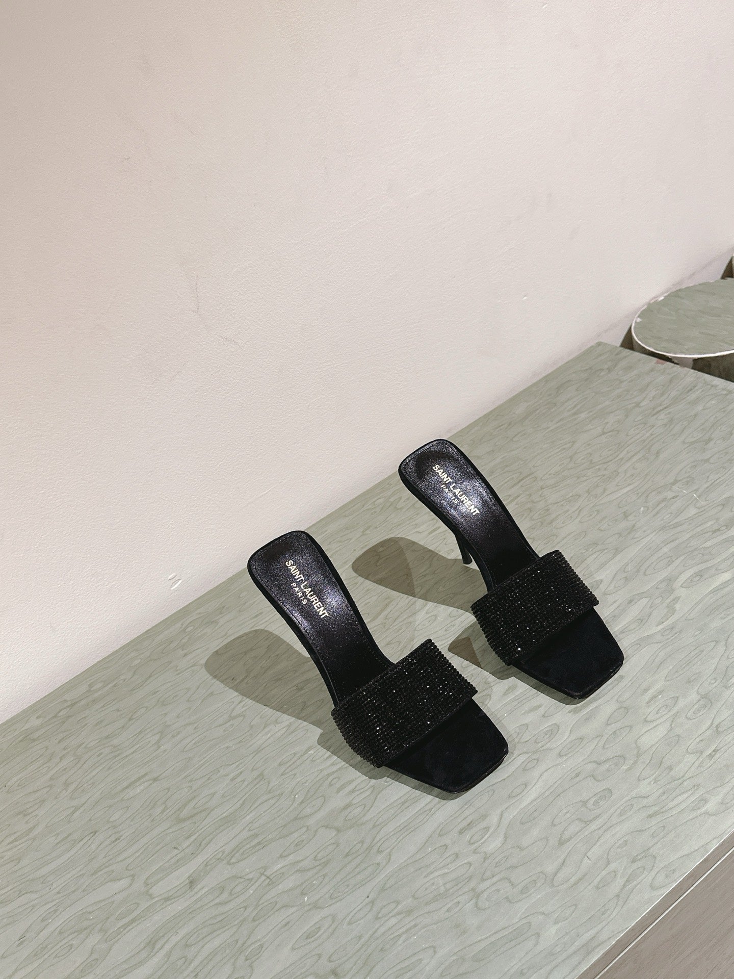 YSL 25S HEELED SANDALS 100 MM IN BLACK LAMBSKIN WITH RHINESTONE-EMBELLISHED STRAP