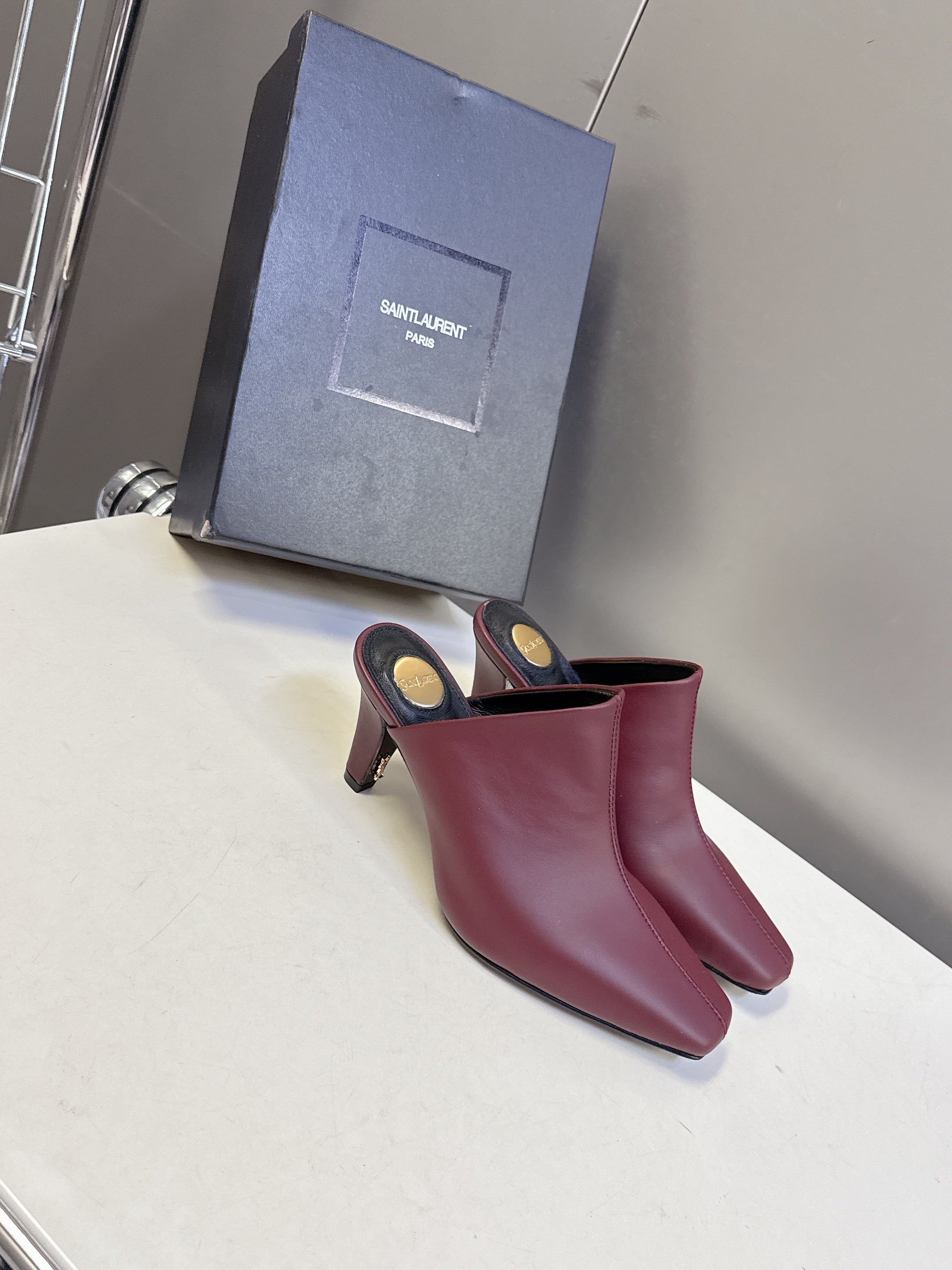 YSL 25S HIGH-HEEL SANDALS 75 MM IN DARK RED LAMBSKIN