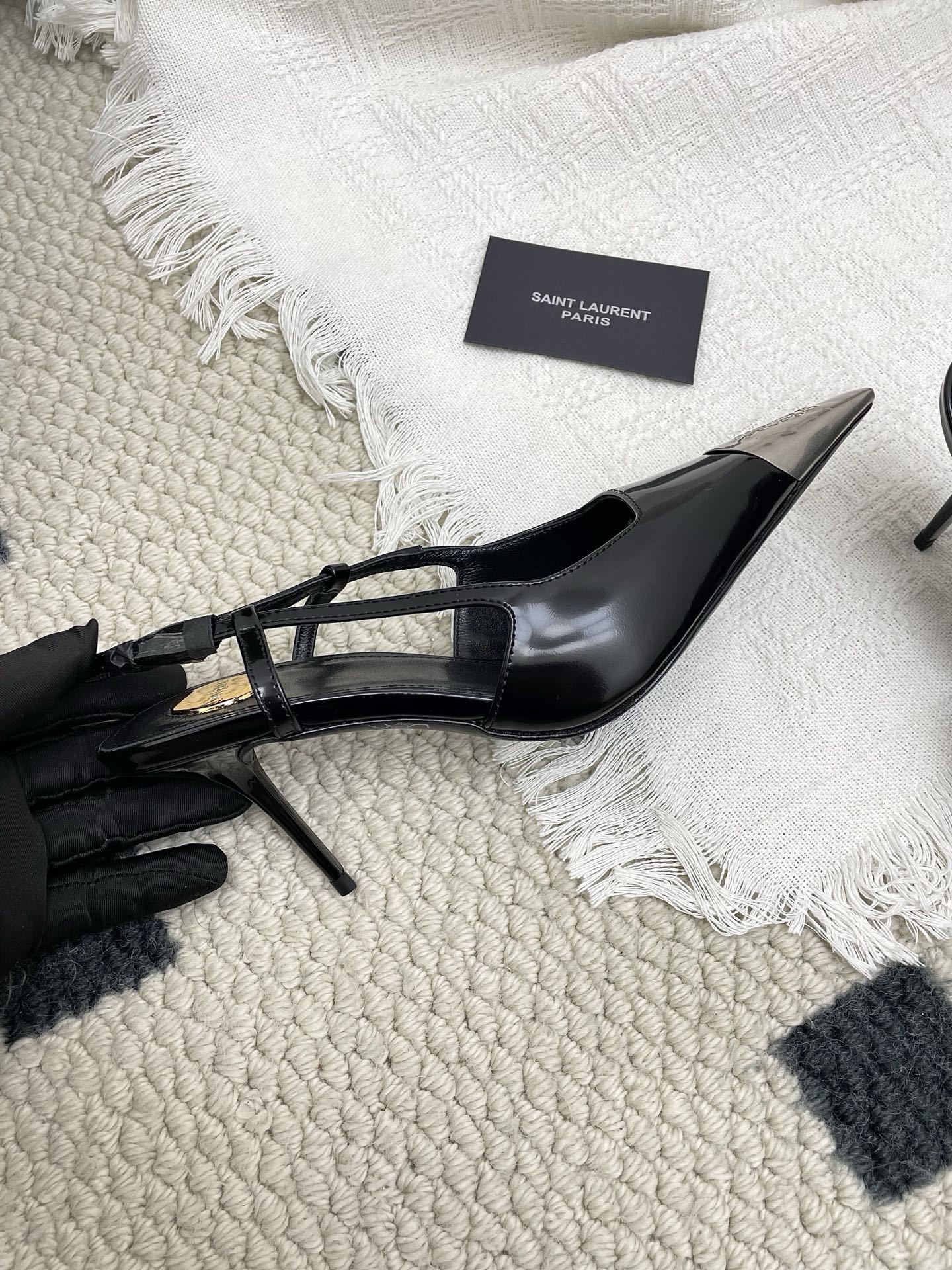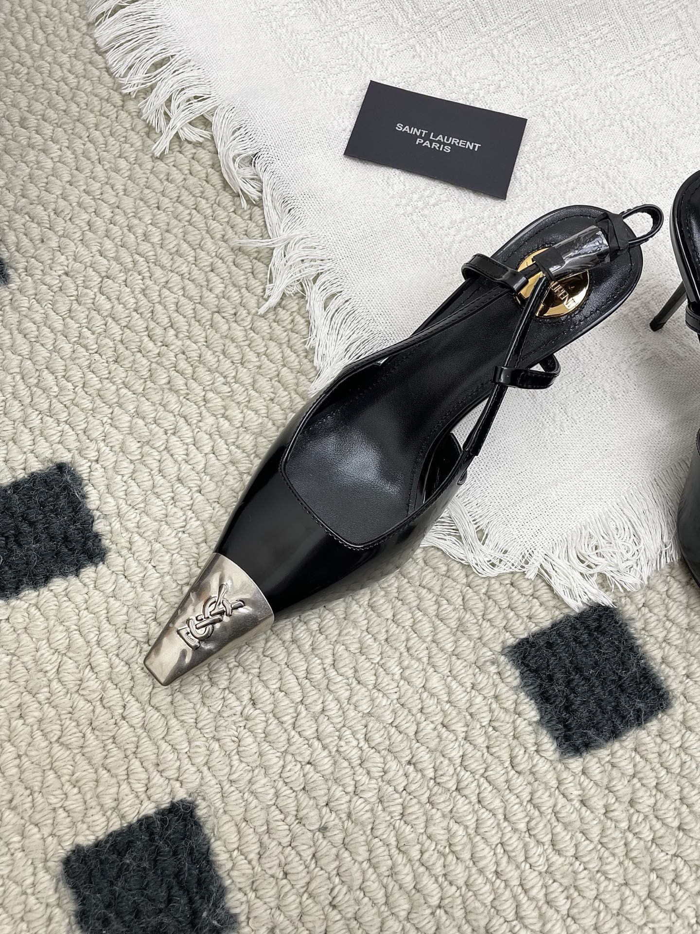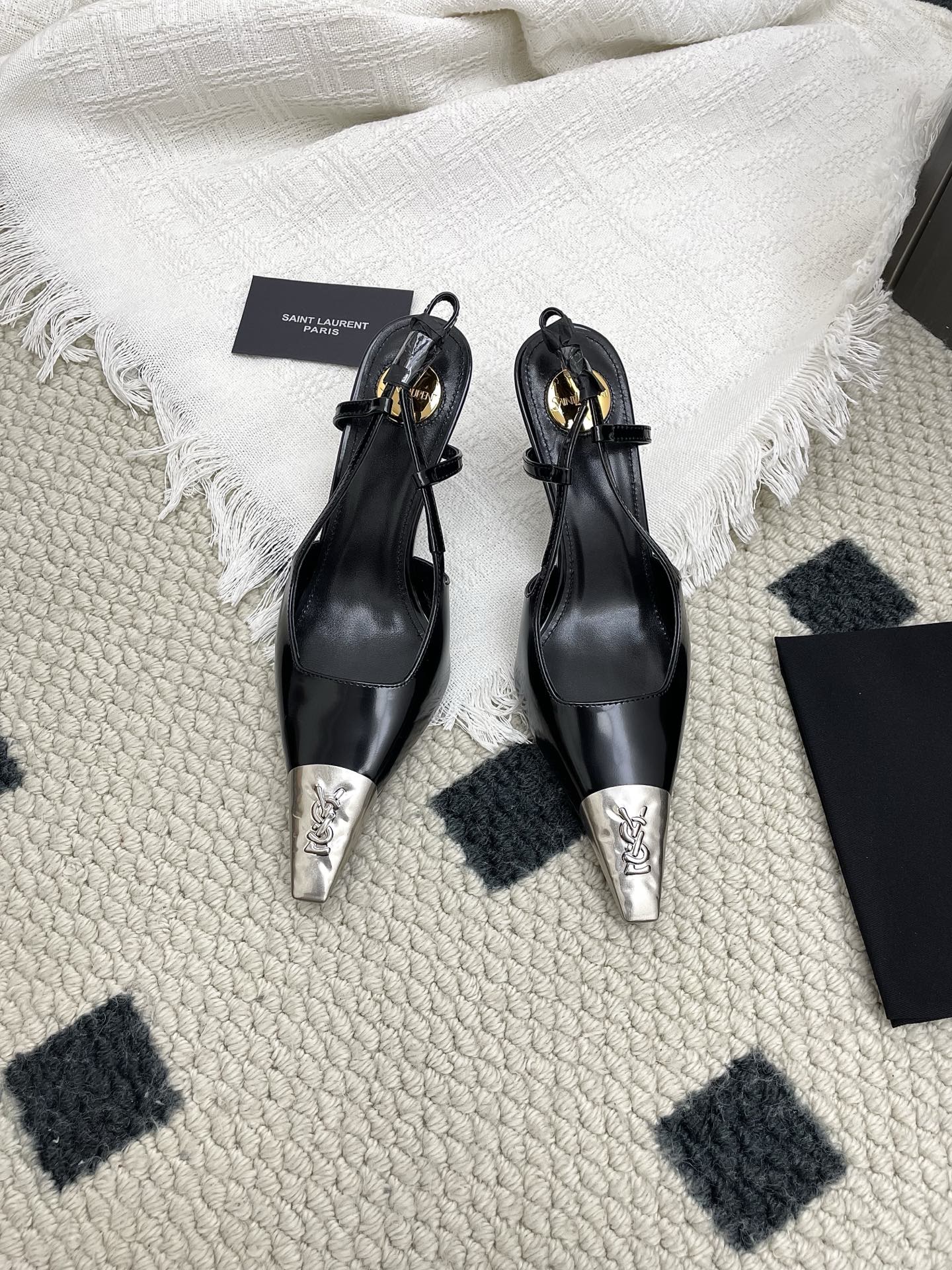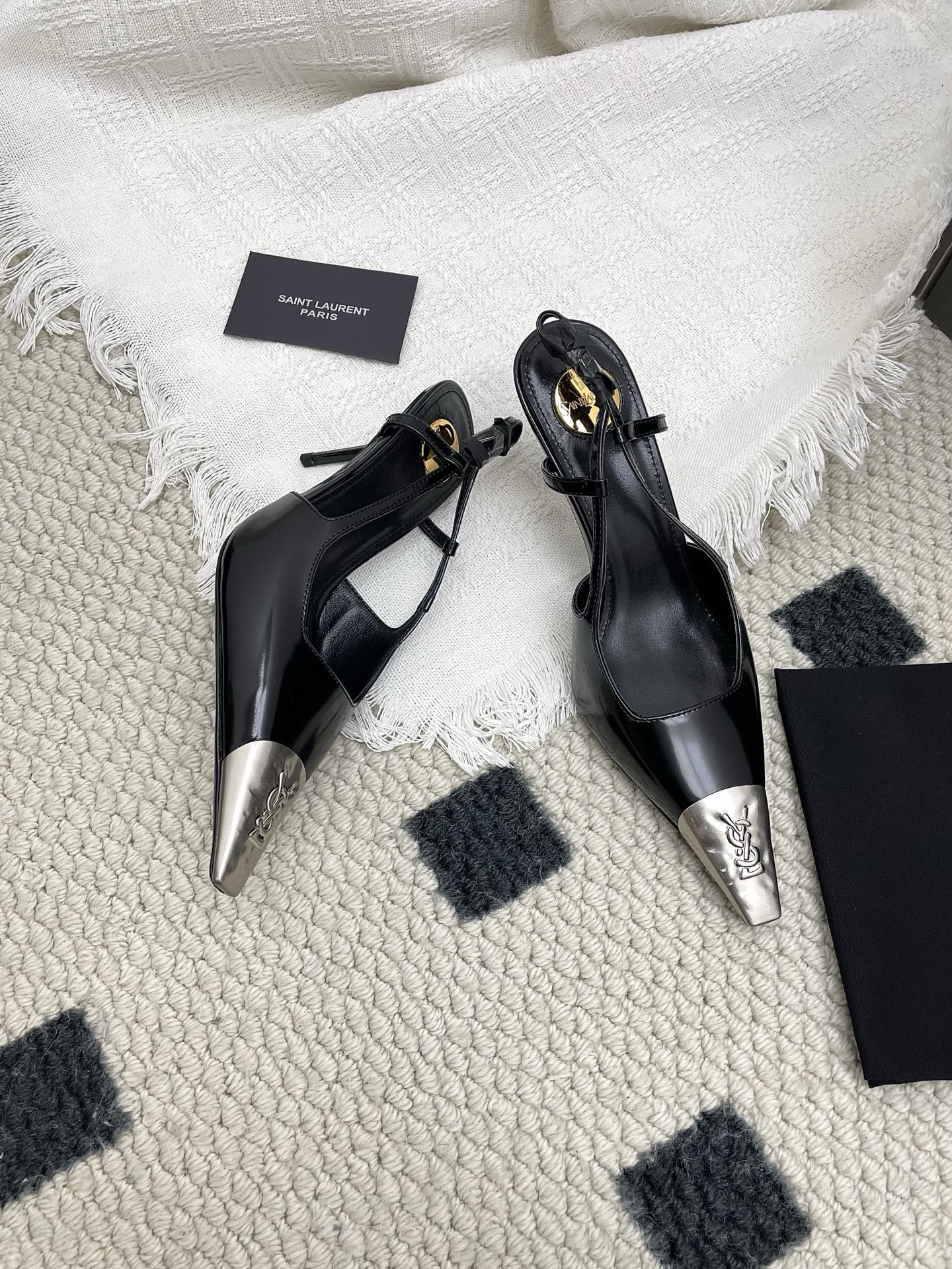 YSL 25S HIGH-HEEL SLINGBACKS 65 MM IN BLACK LAMBSKIN AND SILVER HARDWARE