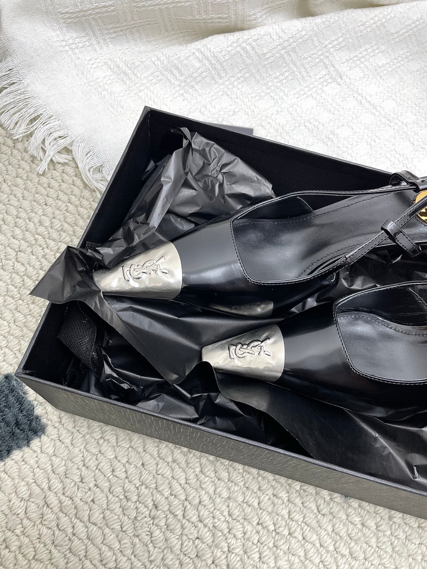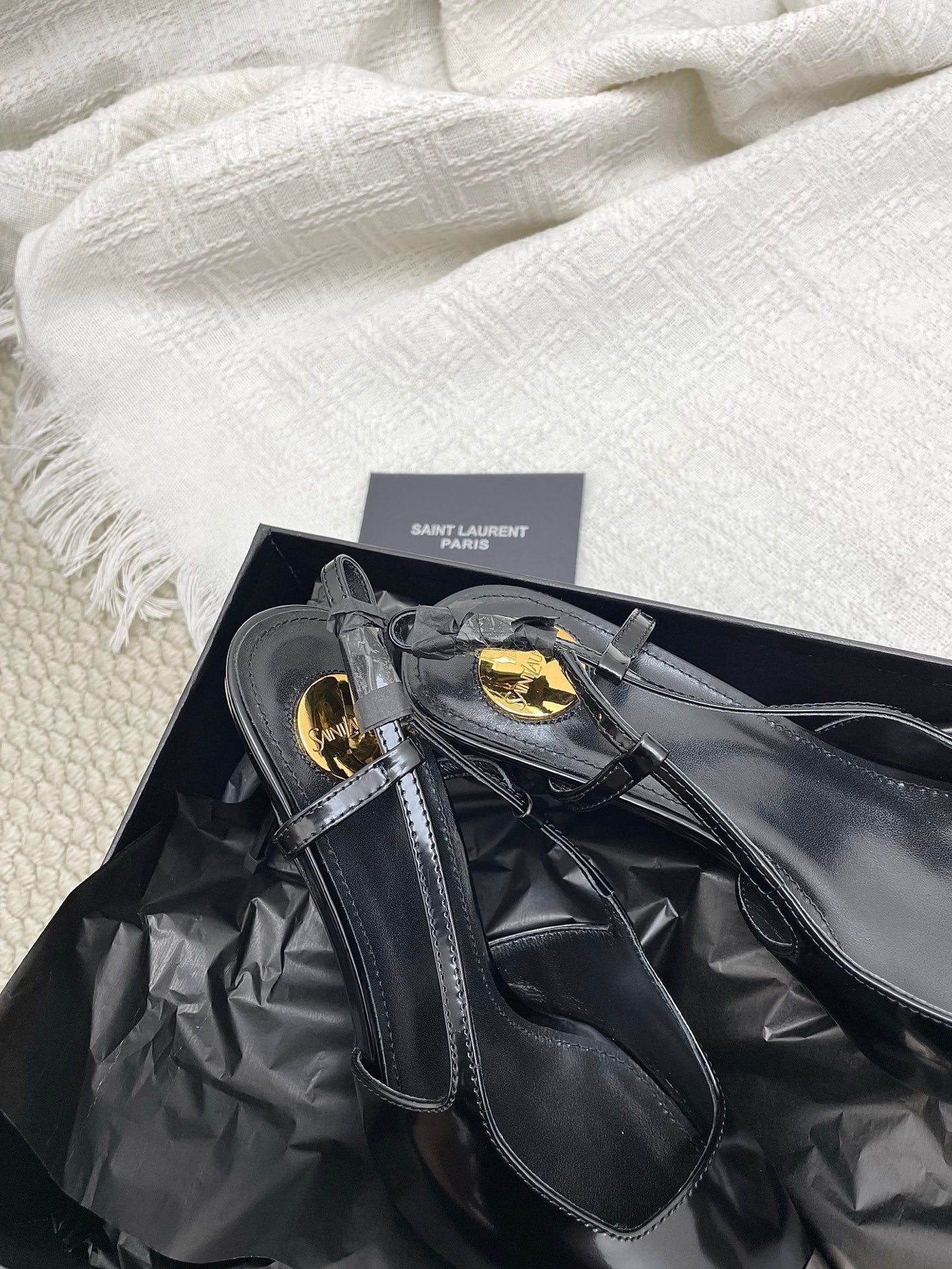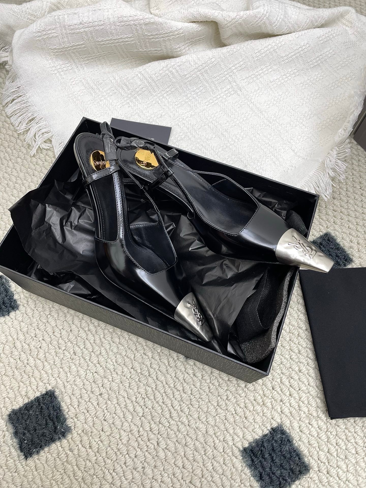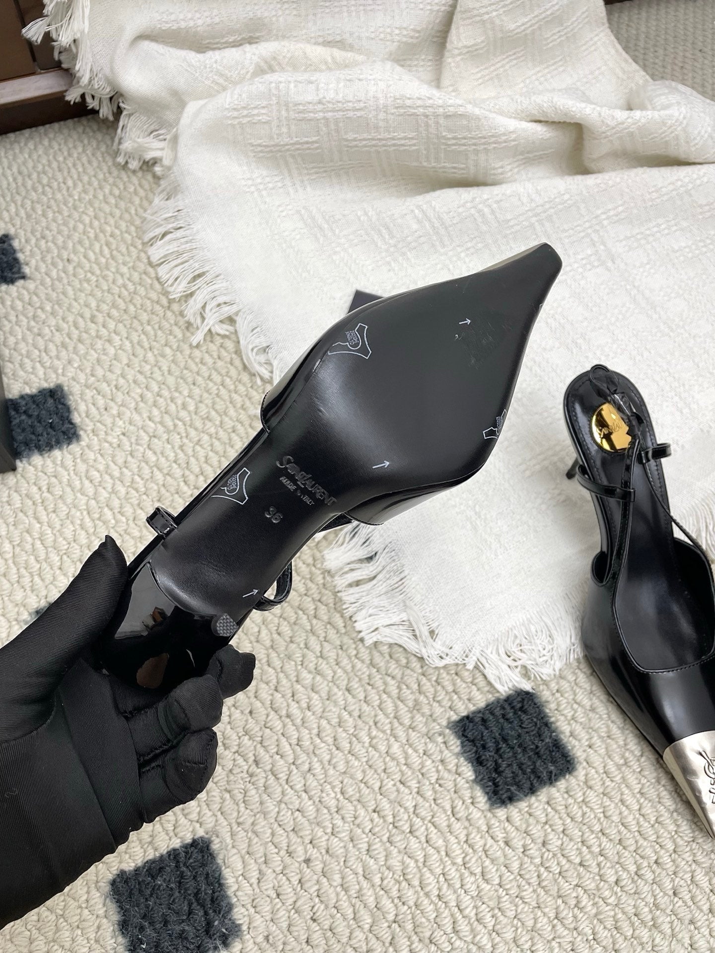 YSL 25S HIGH-HEEL SLINGBACKS 65 MM IN BLACK LAMBSKIN AND SILVER HARDWARE