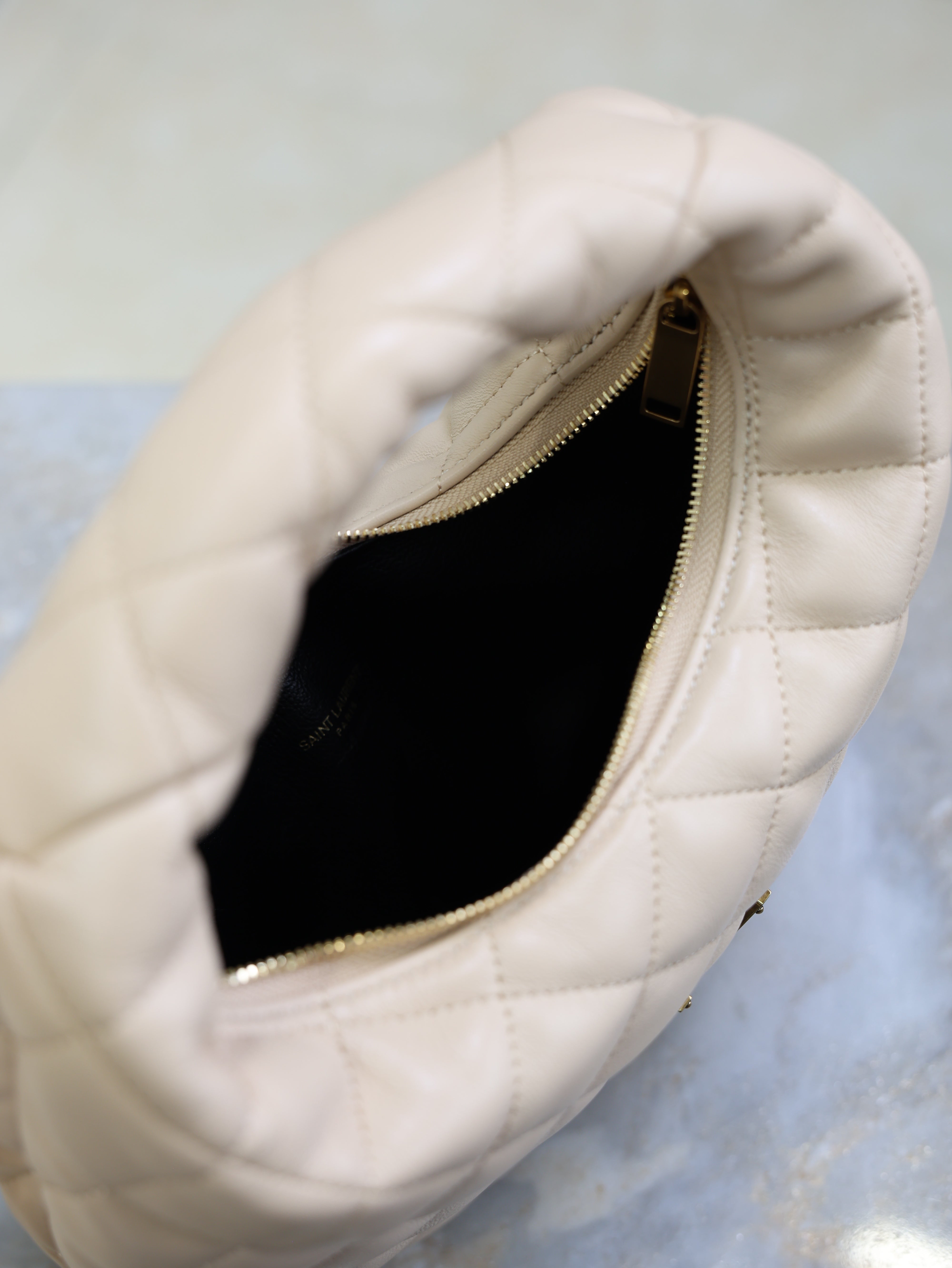 YSL 25S ICARINO 17 IN BEIGE QUILTED CALFSKIN GOLD HARDWARE