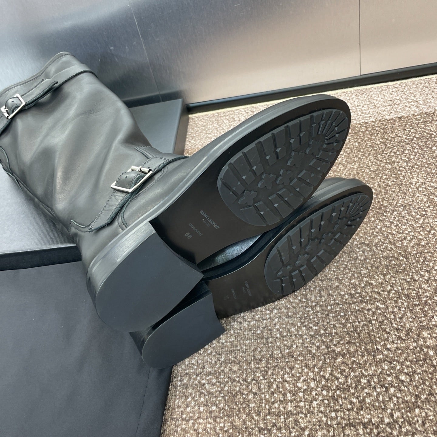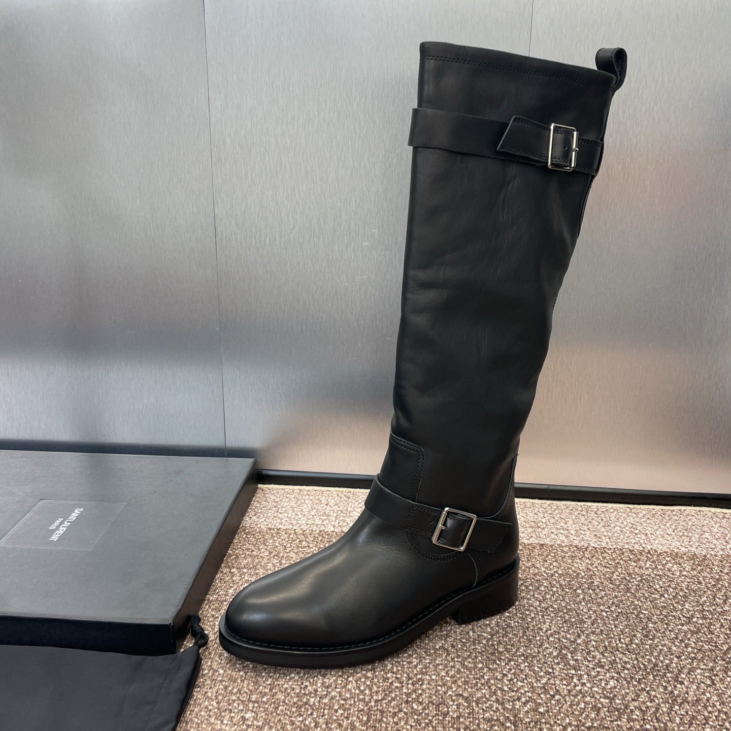 YSL 25S KNEE-HIGH BOOTS 30 MM IN BLACK LAMBSKIN WITH SILVER HARDWARE