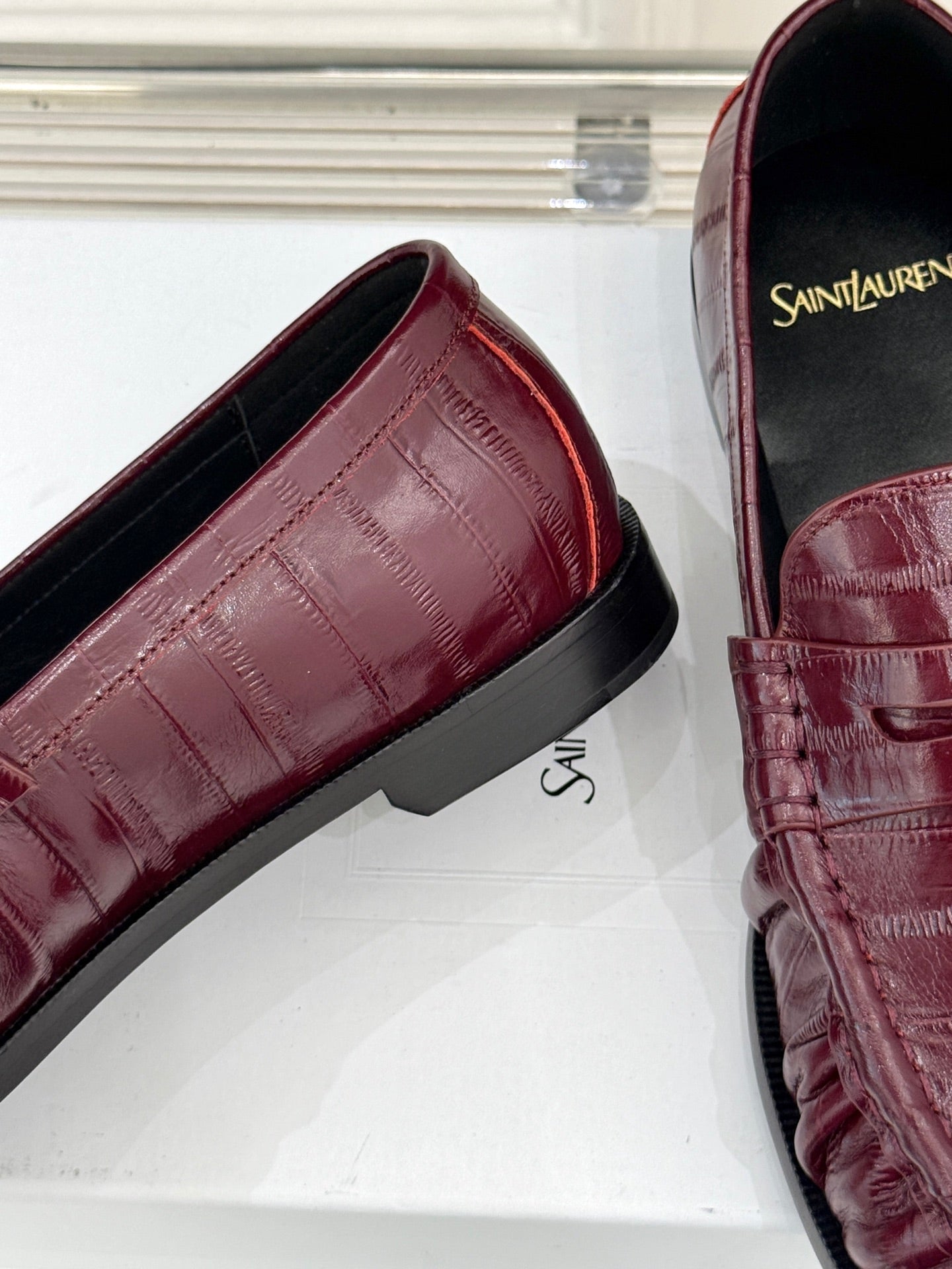 YSL 25S LOAFERS IN DARK RED EMBOSSED LAMBSKIN