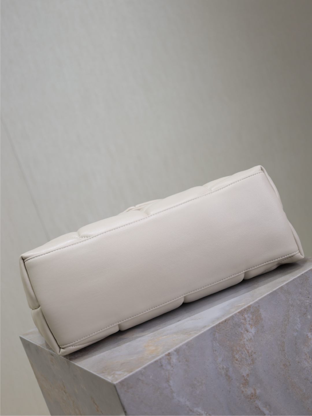 YSL 25S LOULOU PUFFER GM 35 IN SMOKEY TAUPE CALFSKIN SILVER HARDWARE
