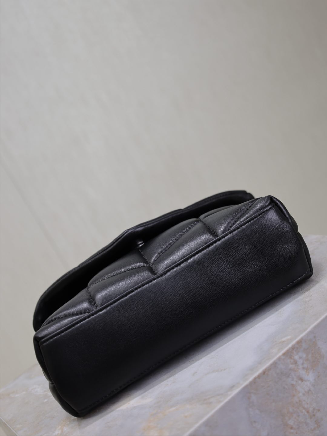 YSL 25S LOULOU PUFFER MINI 23 IN BLACK CALFSKIN SILVER HARDWARE