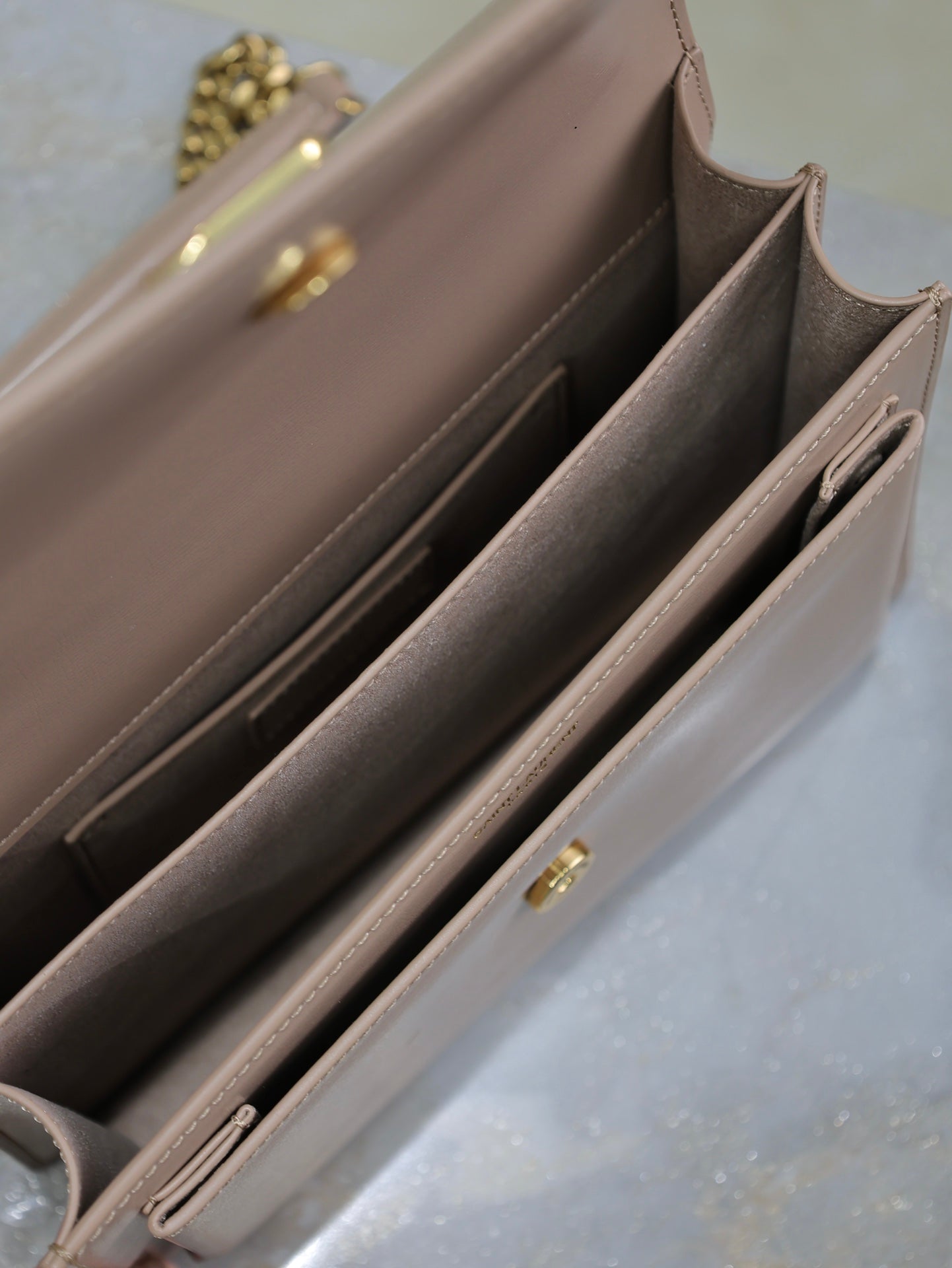 YSL 25S SUNSET BAG 22 IN WARM TAUPE PINK CALFSKIN GOLD HARDWRE